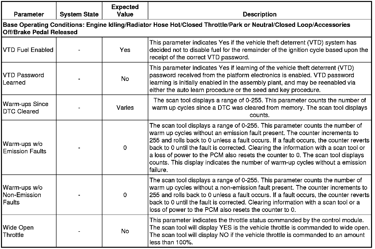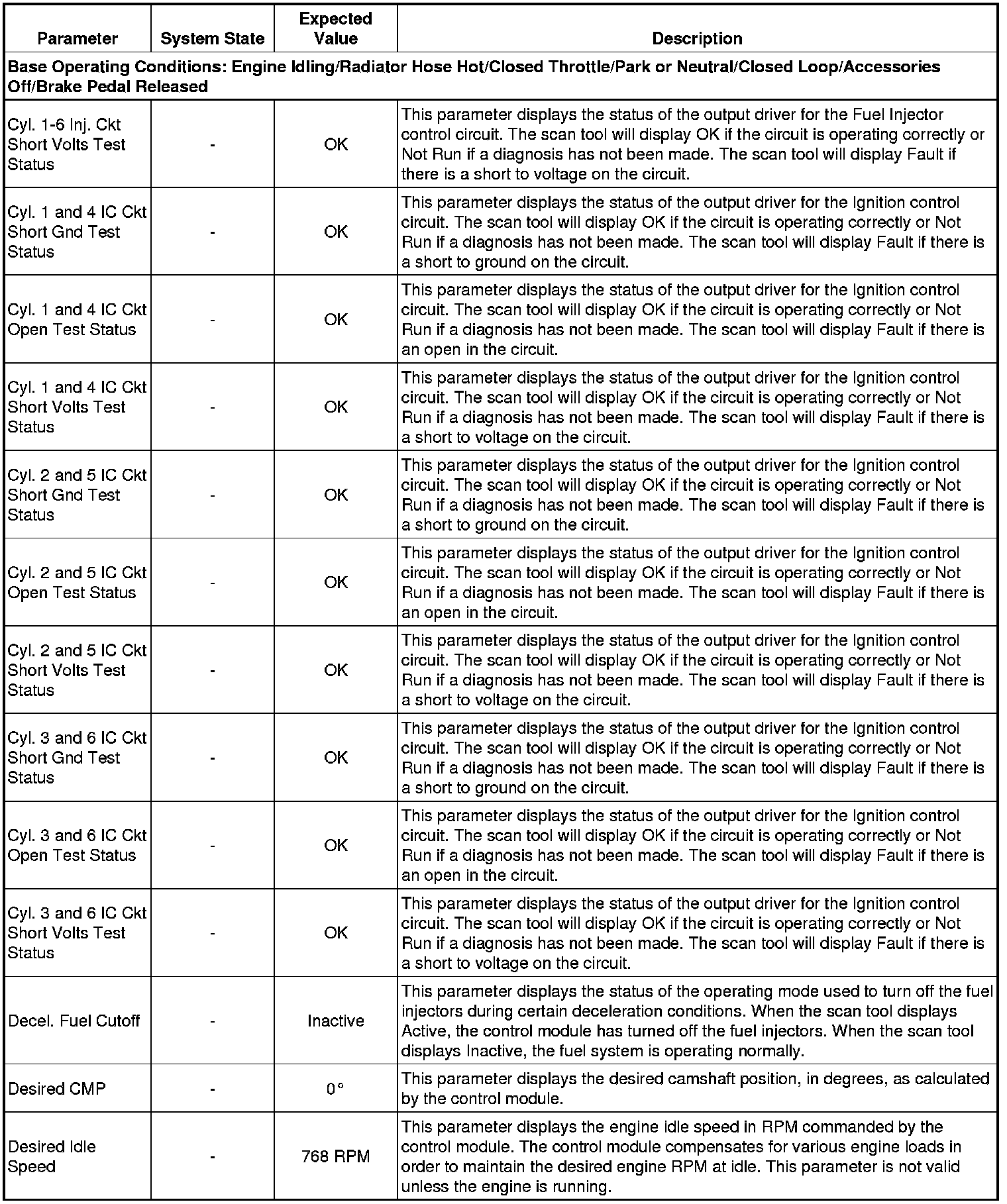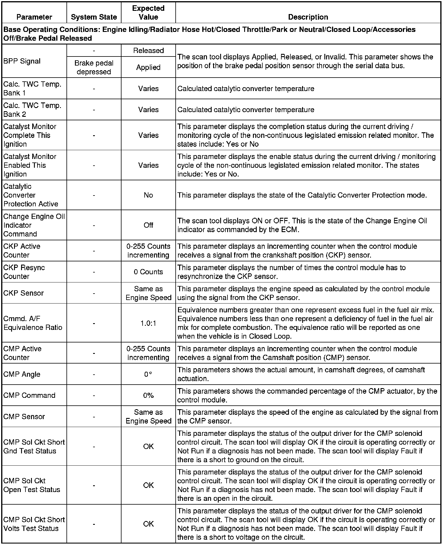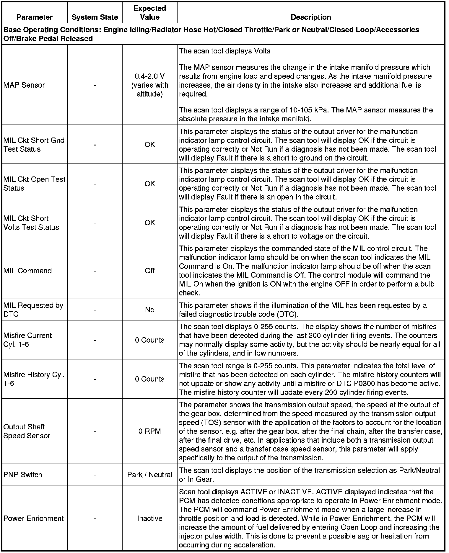 Only the parameters listed below are referenced in this service manual for use in diagnosis. If all values are within the typical range described below, refer to Symptoms - Engine Controls (- Symptoms - Engine Controls) for diagnosis.