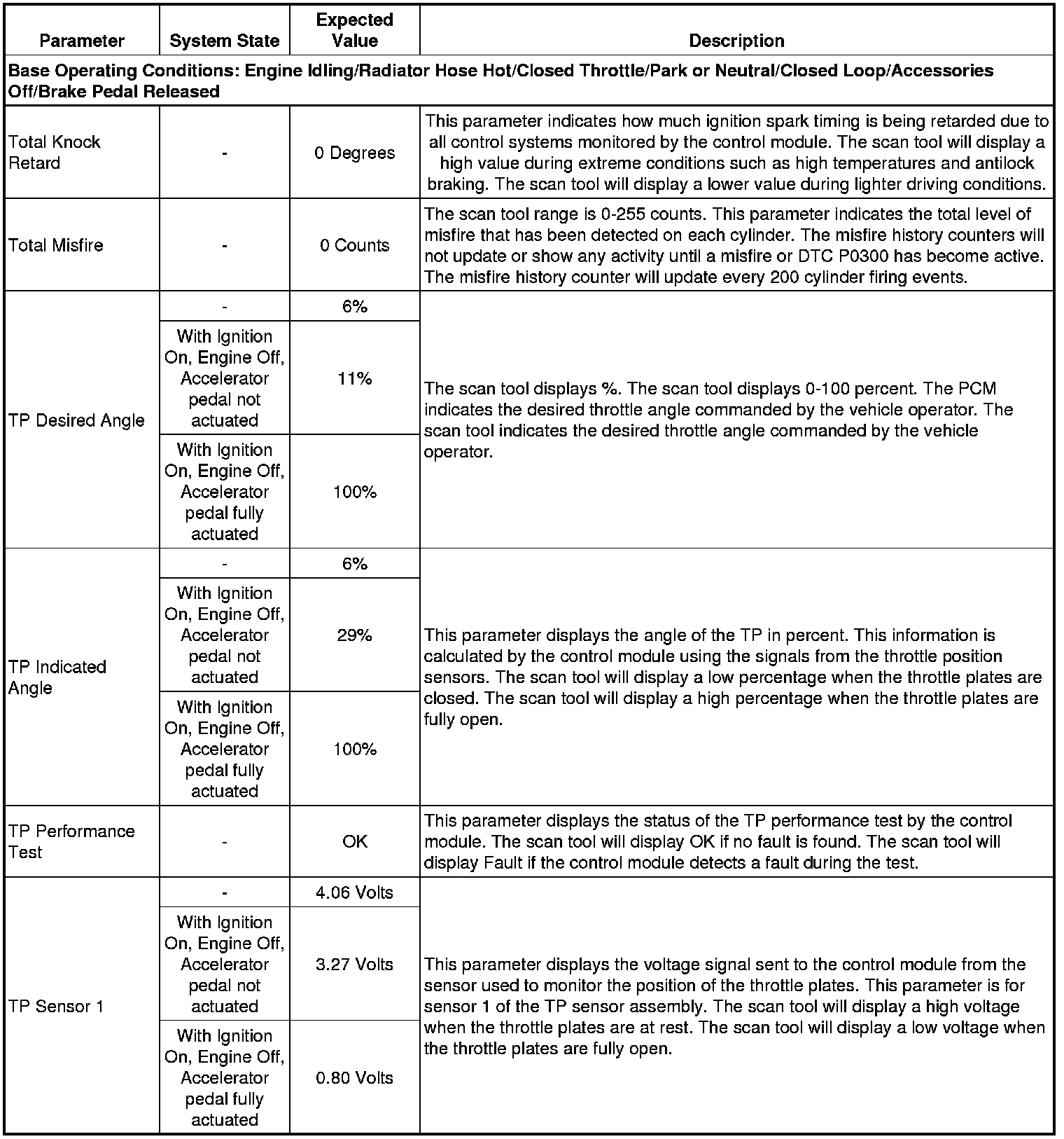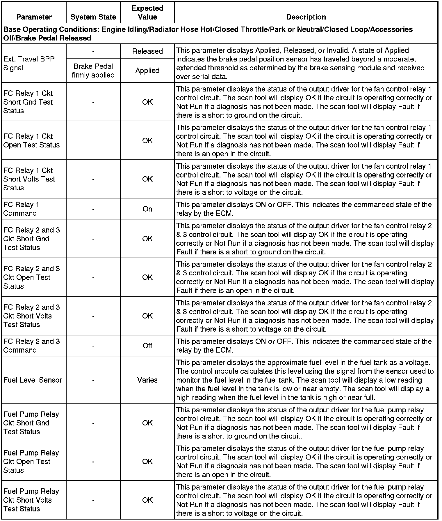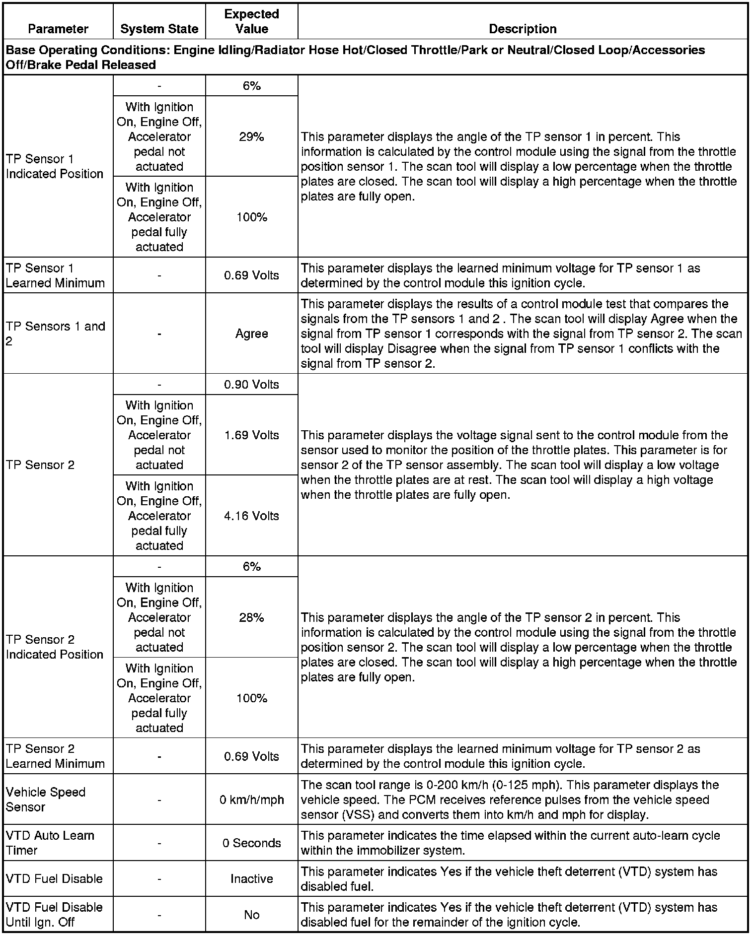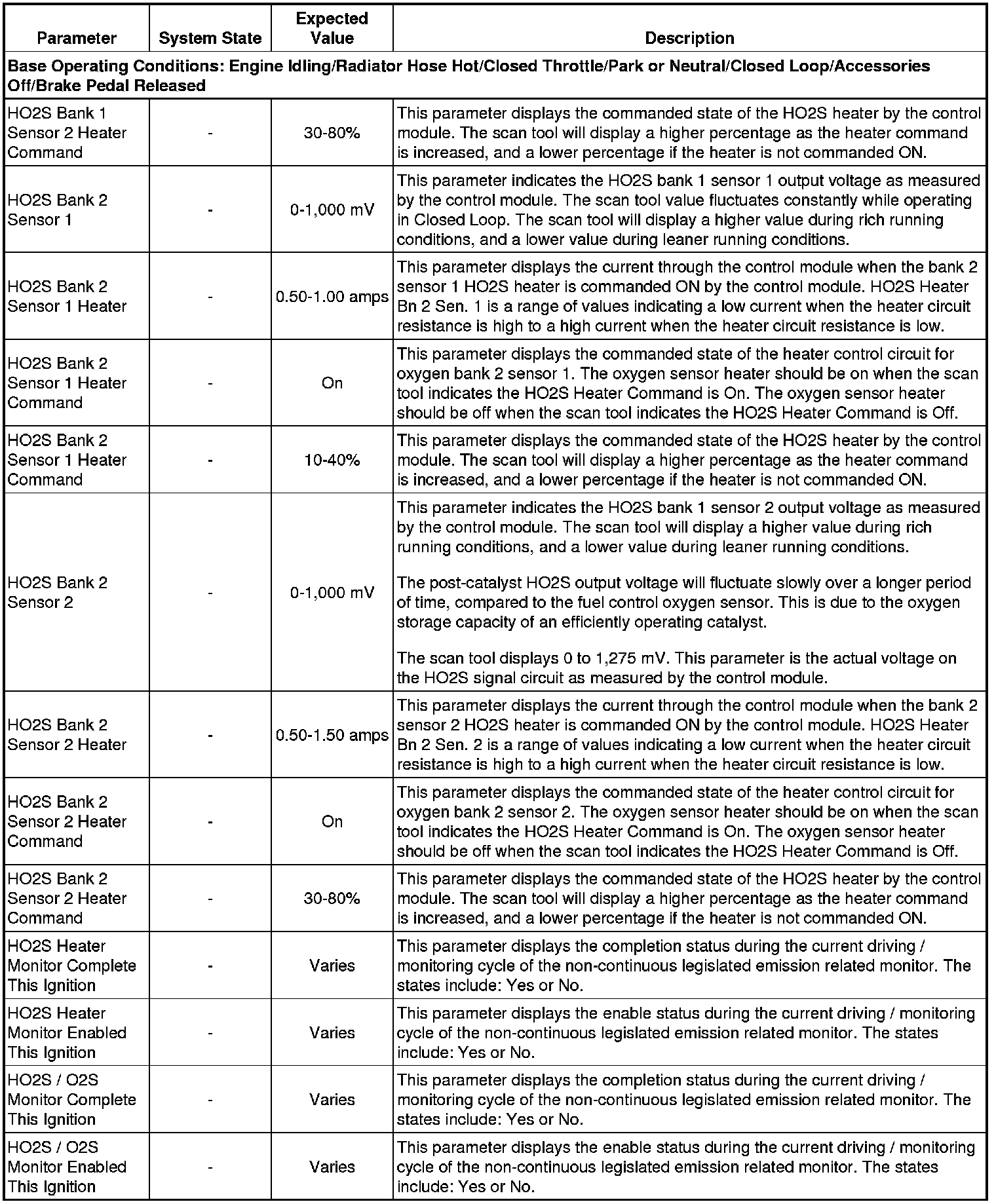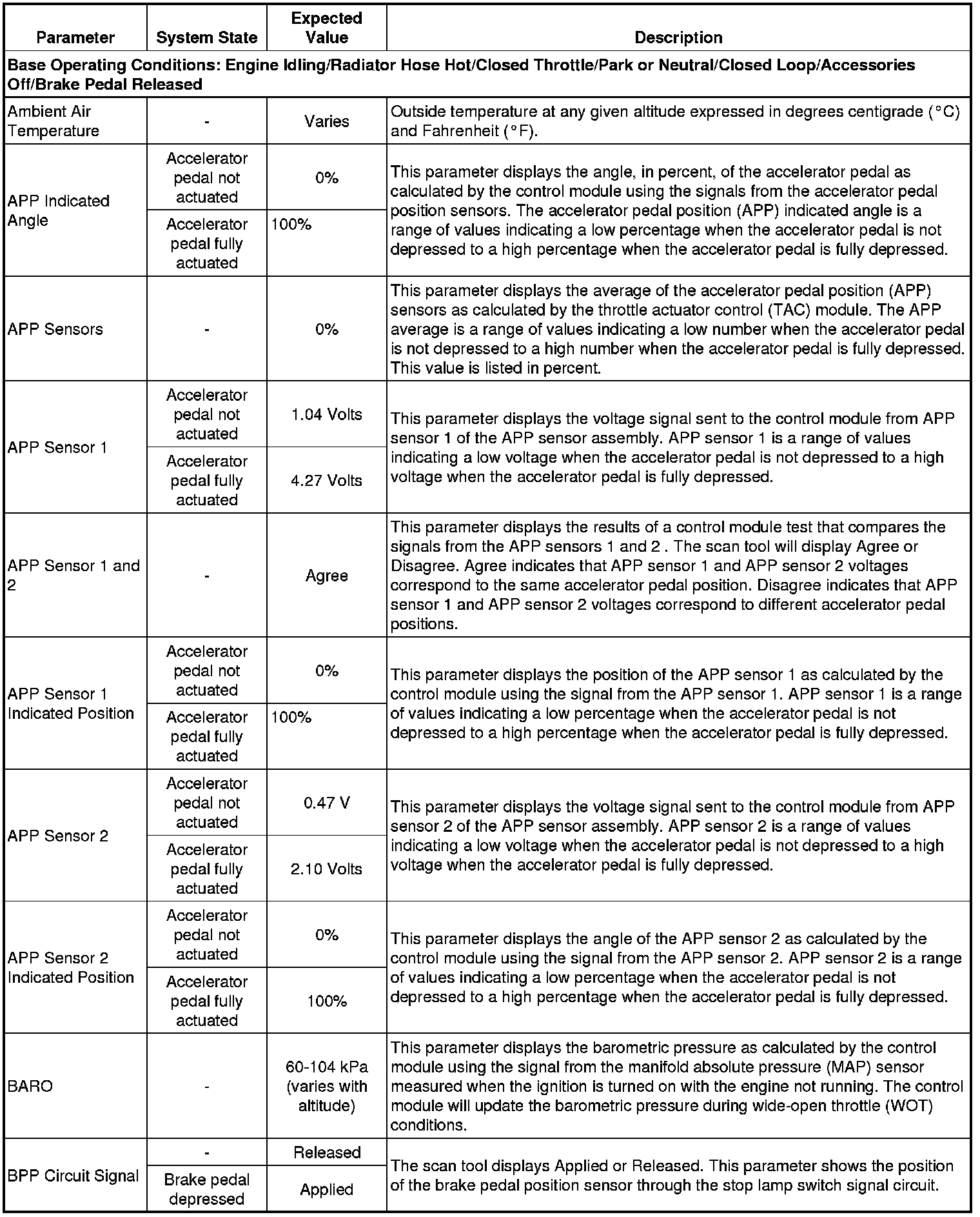 Only the parameters listed below are referenced in this service manual for use in diagnosis. If all values are within the typical range described below, refer to Symptoms - Engine Controls (- Symptoms - Engine Controls) for diagnosis.