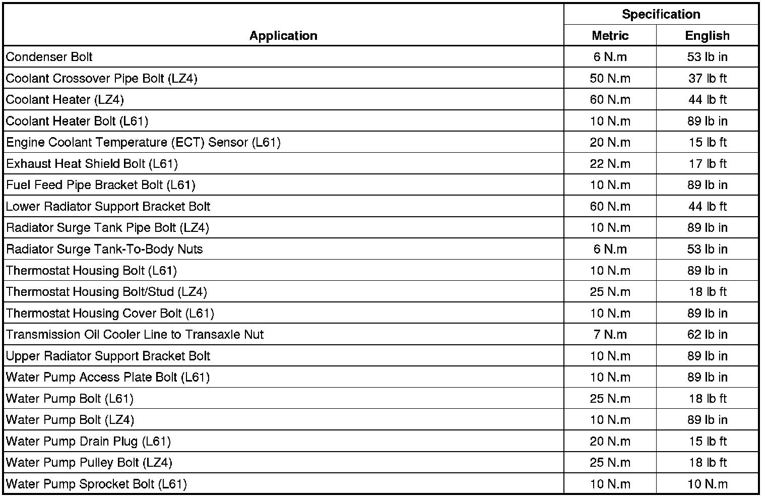 Fastener Tightening Specifications