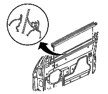 1. Position both ends of the inner window sealing strip to the pinch-weld flange with the center of the sealing strip slightly bent upward.