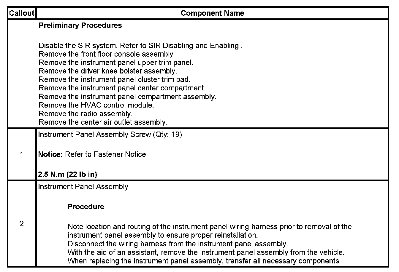 Instrument Panel Assembly Replacement