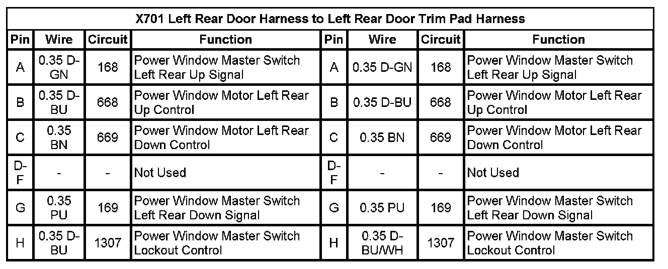 X701 Left Rear Door Harness to Left Rear Door Trim Pad Harness