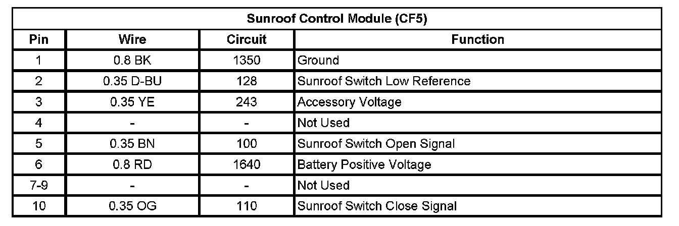 Sunroof Control Module (CF5)