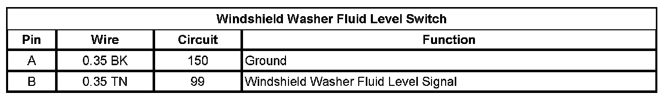 Washer Fluid Level Switch