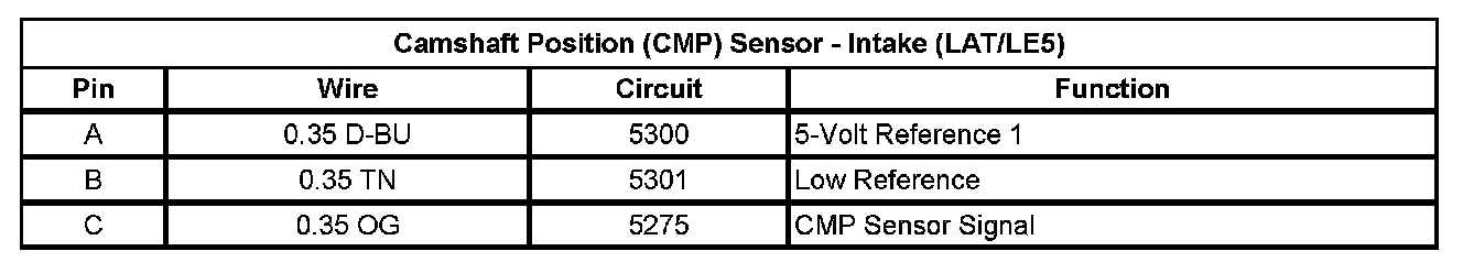 Camshaft Position (CMP) Sensor - Intake (LAT/LE5)