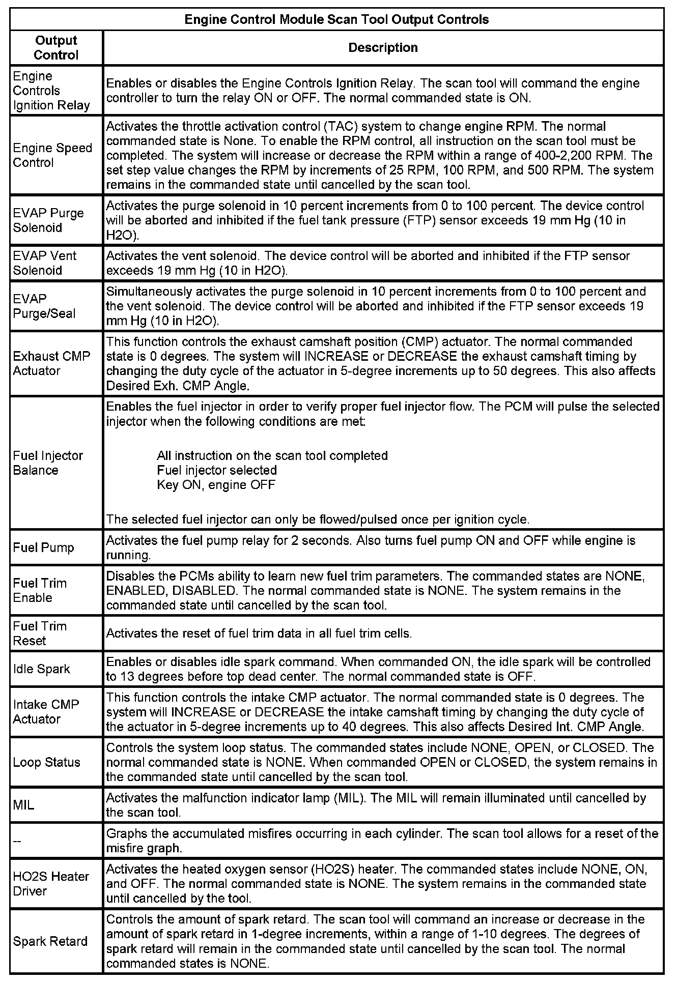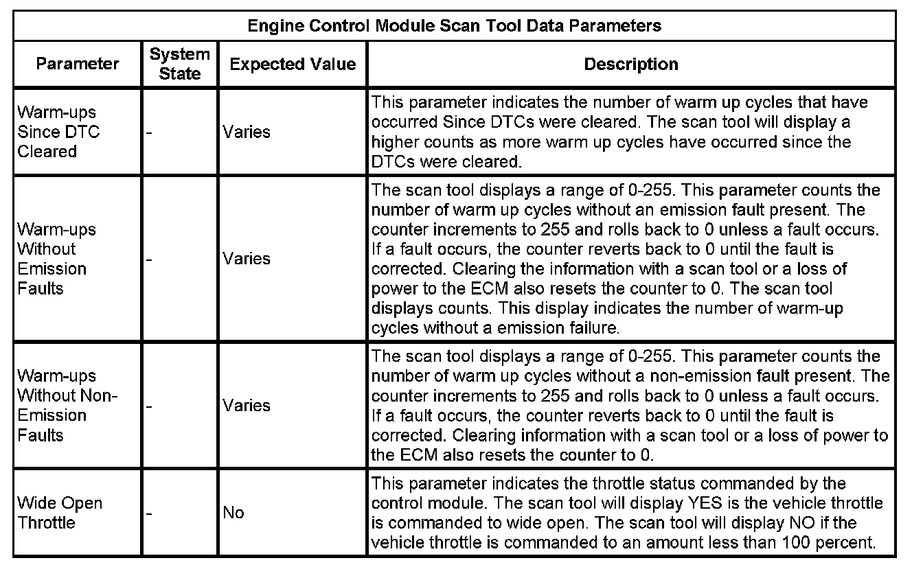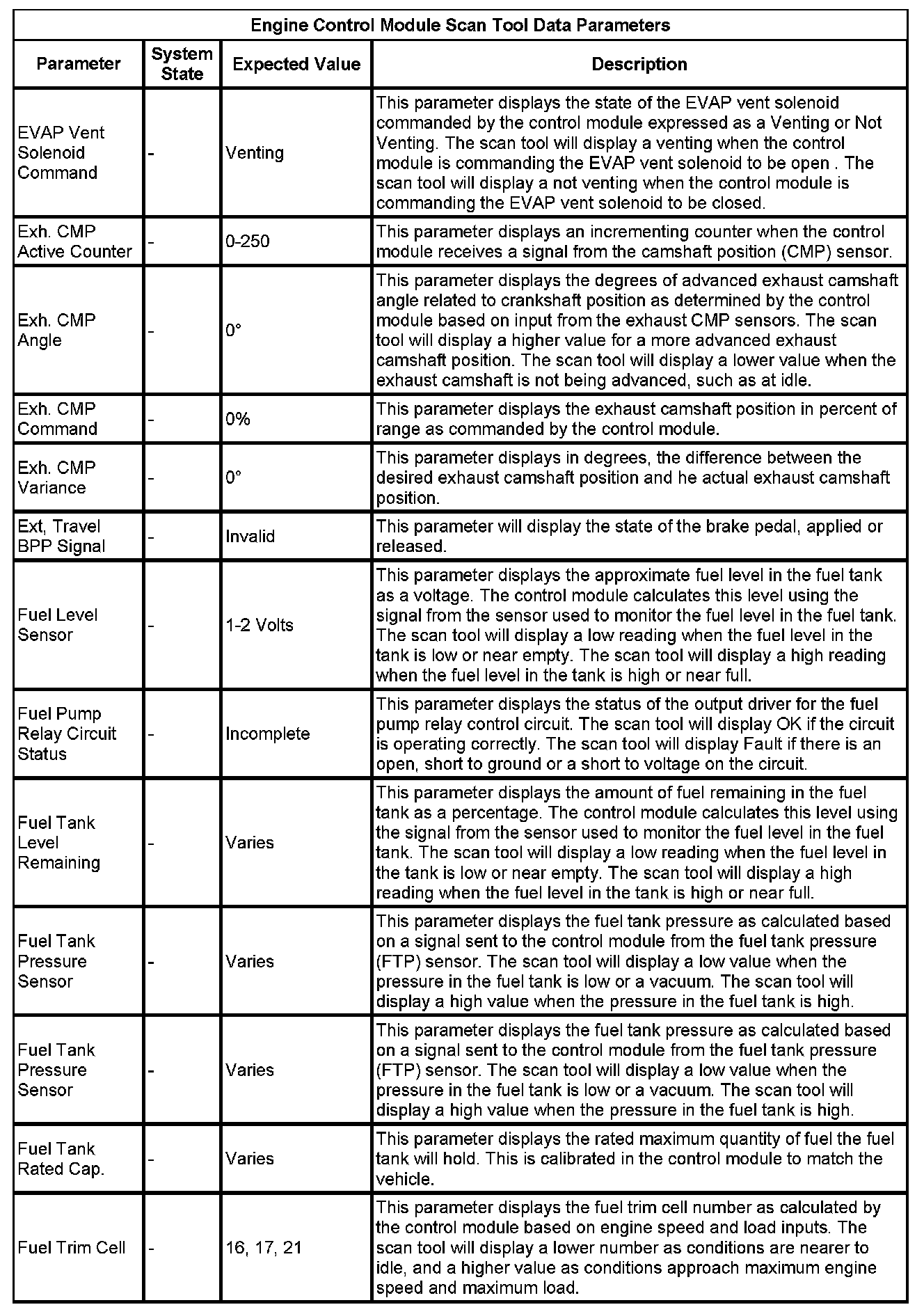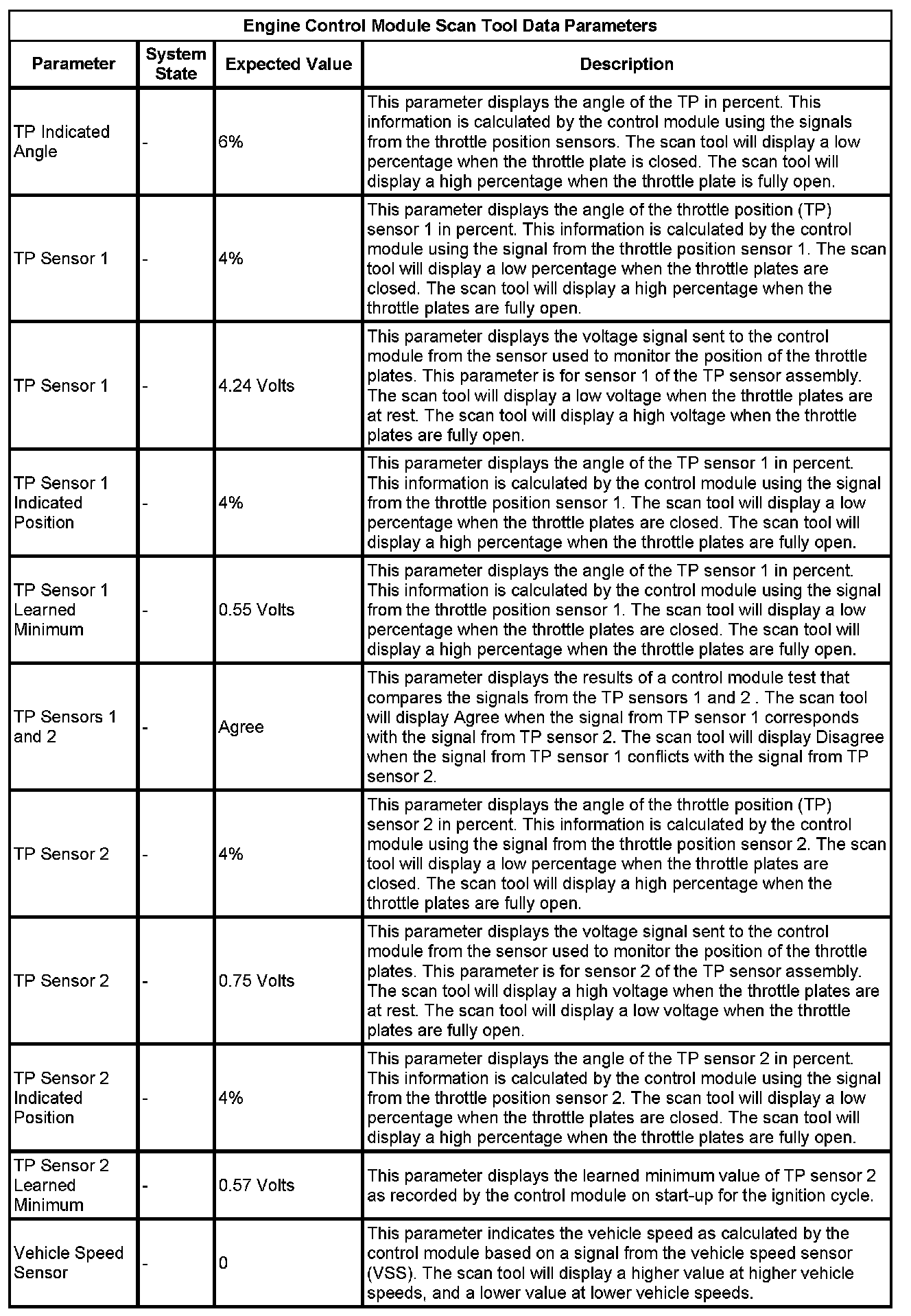 The Engine Scan Tool Data List contains all engine related parameters that are available on the scan tool. The list is arranged in alphabetical order.