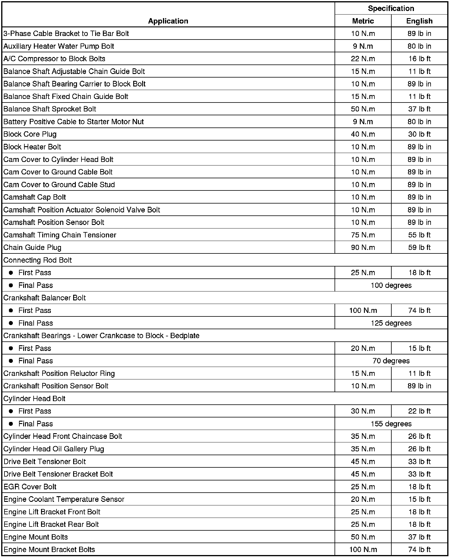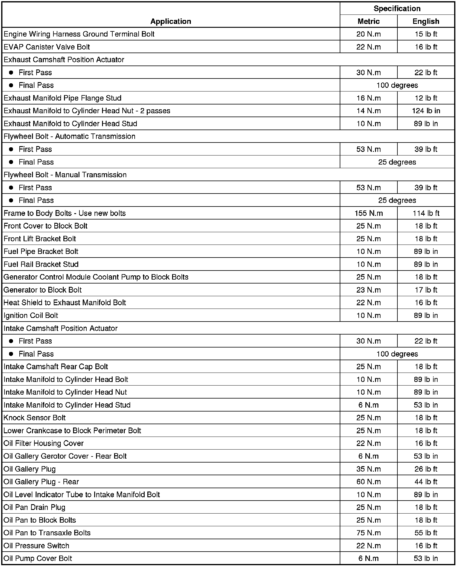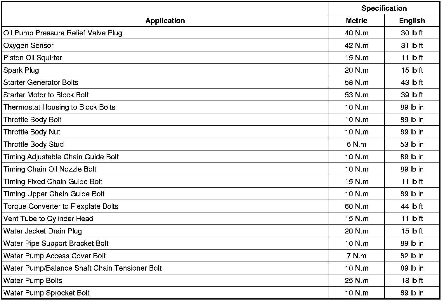 Fastener Tightening Specifications