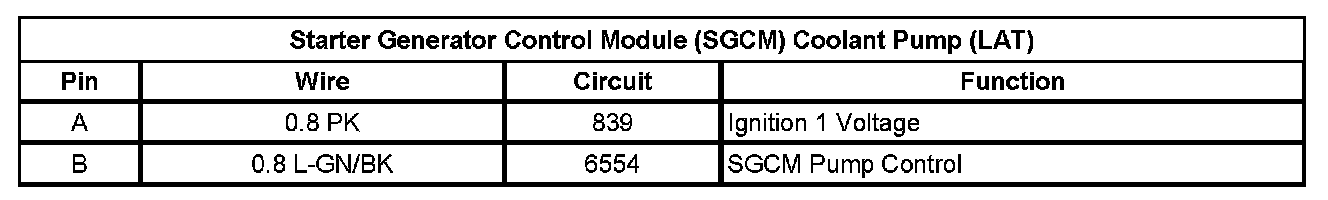 Starter Generator Control Module (SGCM) Coolant Pump (LAT)
