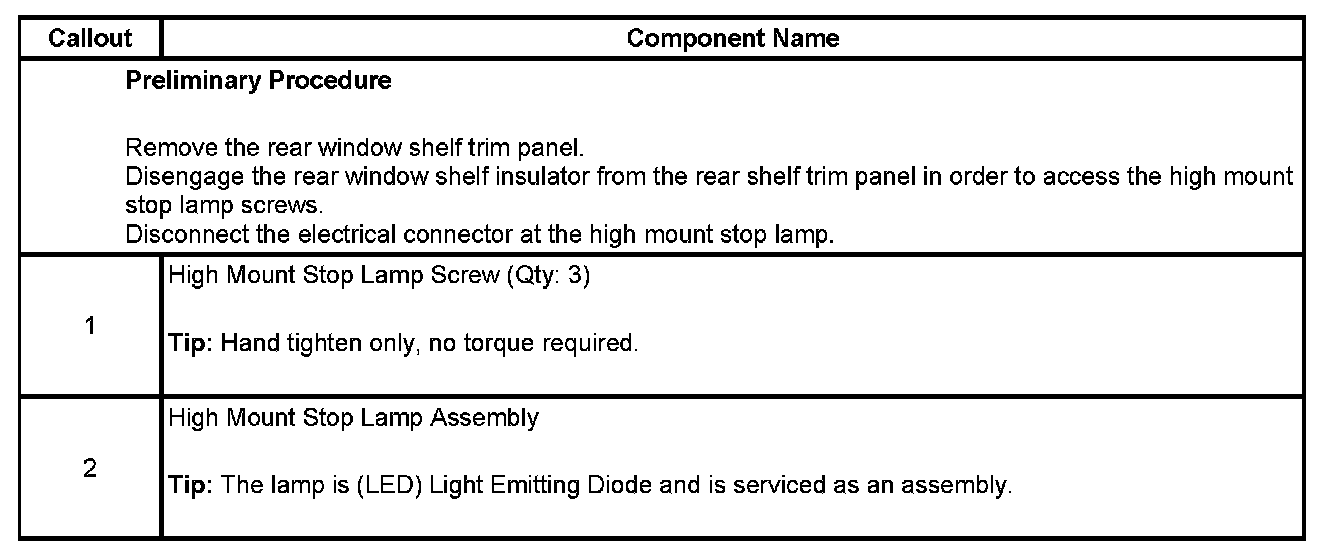 Center Mounted Brake Lamp: Service and Repair