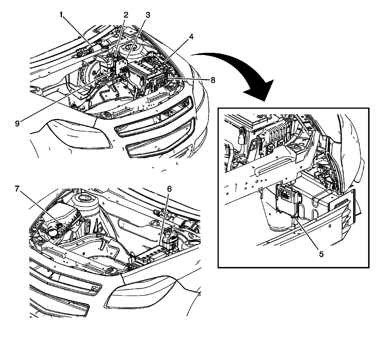 Front of Vehicle/Engine Compartment Component Views