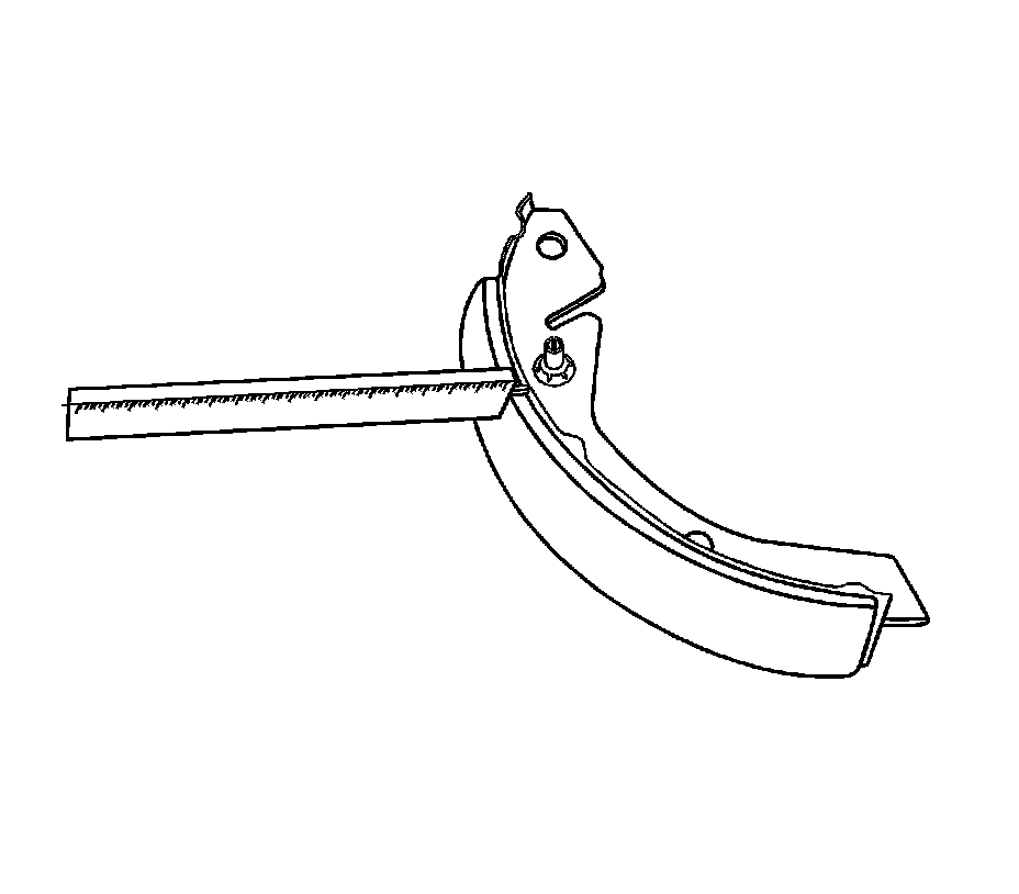 3. If the lining thickness is less than the specification, or if a defect is found, replace the linings. Refer to Brake Shoe Replacement (Service and Repair).