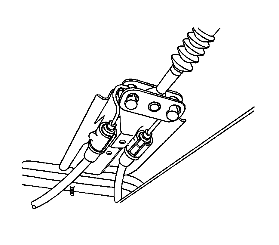 10. Remove the parking brake cables from the welded body bracket.