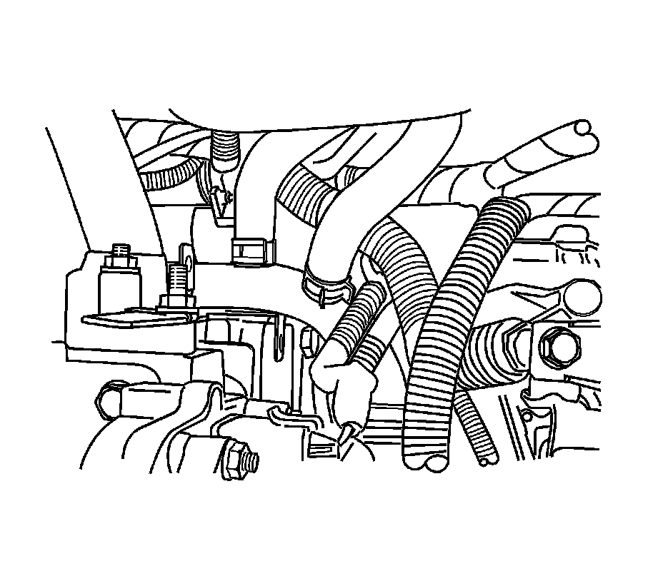 2. Install the right heater hose to the fitting below the intake manifold. Slide the end of the heater hose over the fitting until it is seated.