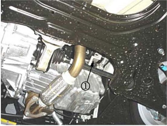3. Lift up the vehicle. Refer to Lifting and Jacking the Vehicle in SI. The alternator (1) is located behind the center side of the engine.