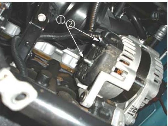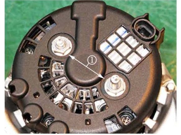 5. Remove the alternator rear cover by removing the two cover screws (1) with a 13 mm socket.