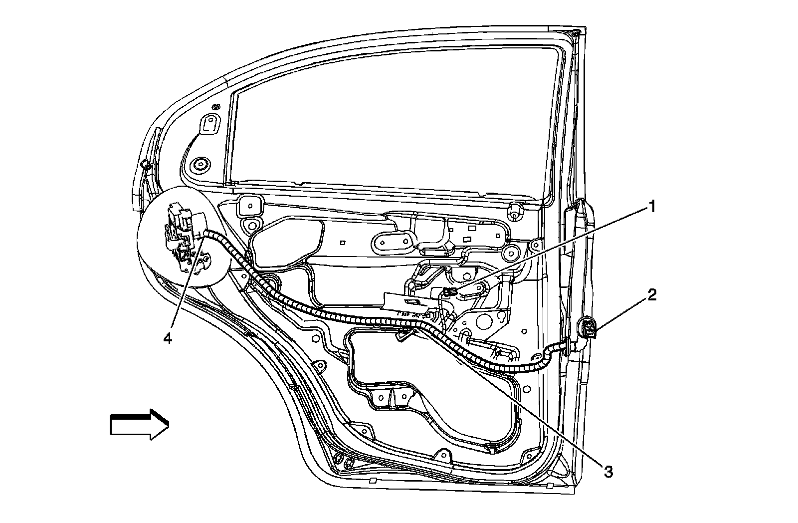 Front Door Harness Routing (Driver Shown, Passenger Similar)