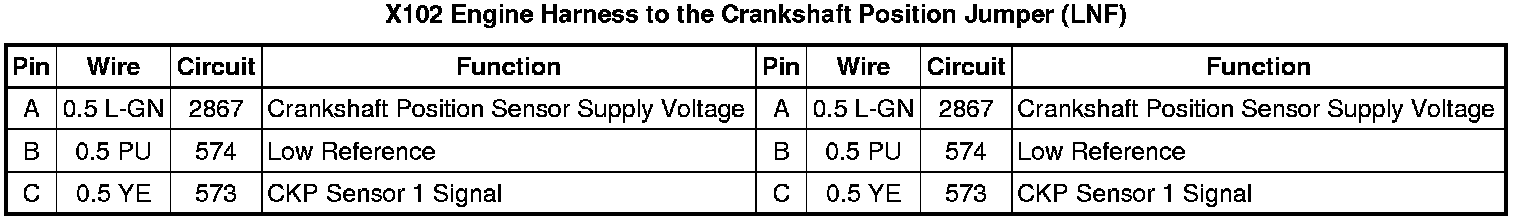X102 Engine Harness to the Crankshaft Position Jumper (LNF)
