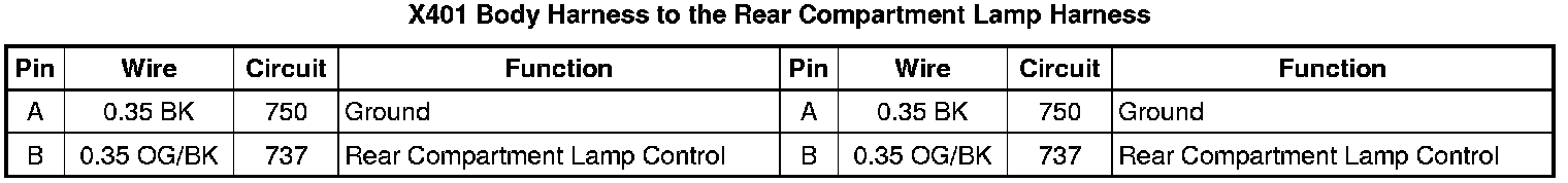 X401 Body Harness to the Rear Compartment Lamp Harness