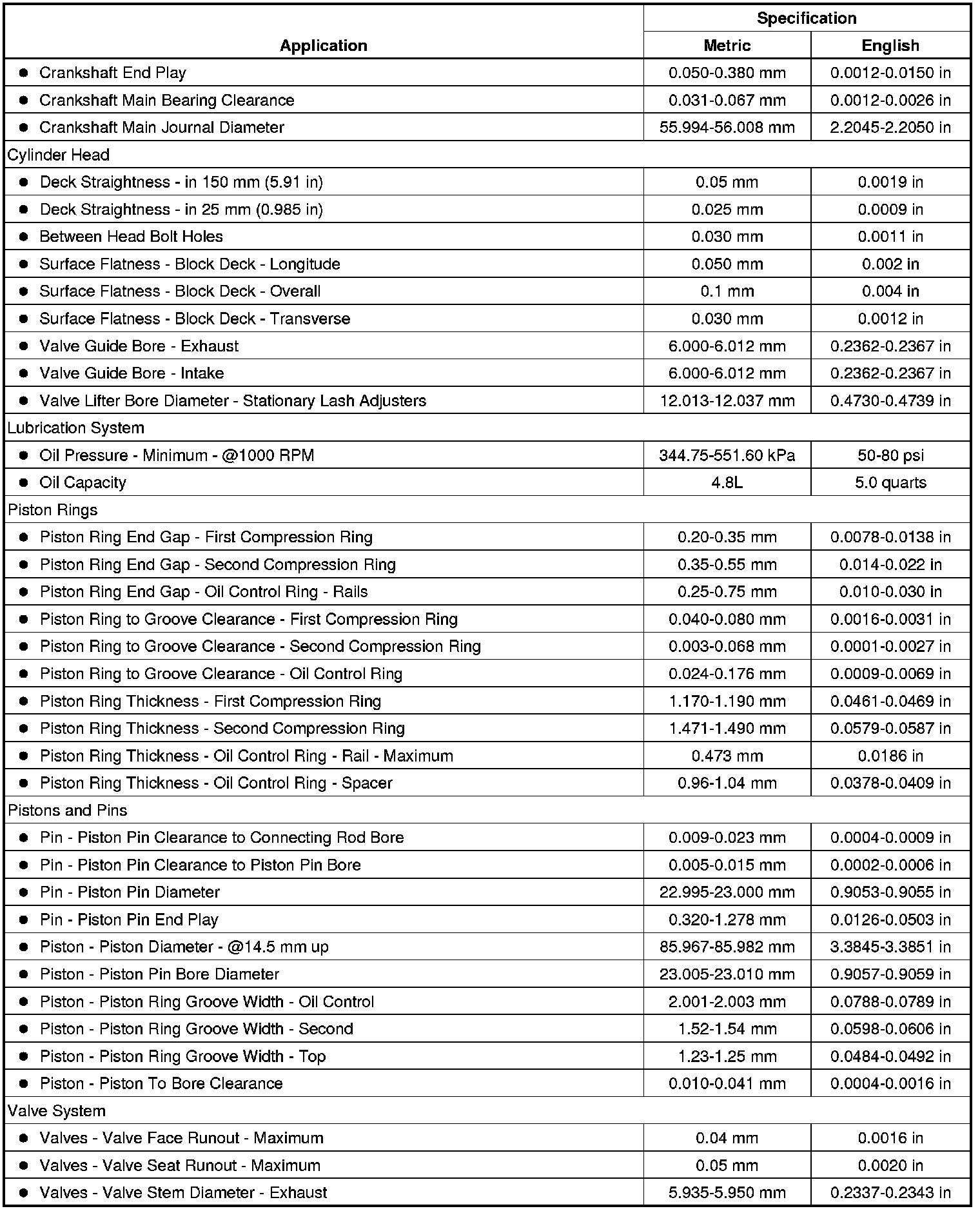 Engine Mechanical Specifications