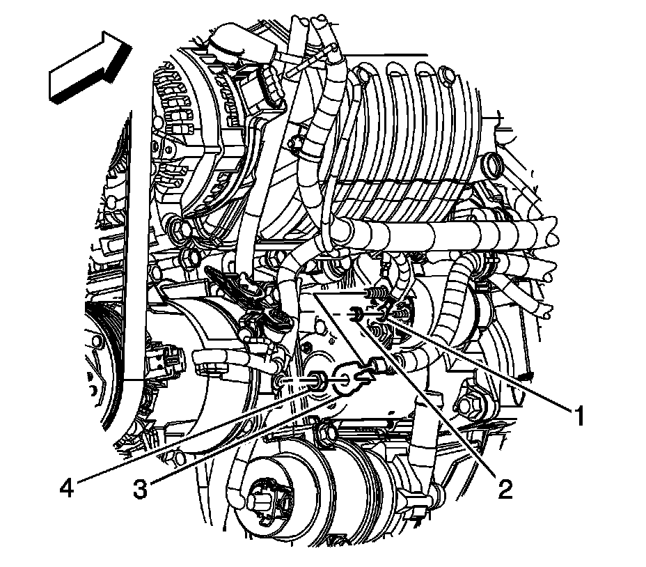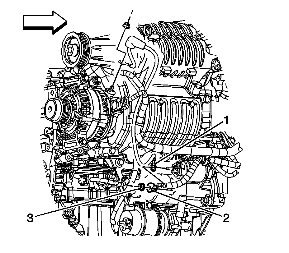 5. Remove the positive battery cable clip (3) from the engine control module (ECM) bracket.