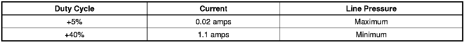 When vehicle operating conditions are appropriate to apply the TCC, the TCM immediately increases the duty cycle to approximately 42 percent. The TCM then ramps the duty cycle up to approximately 90 percent to achieve full TCC apply pressure. The rate at which the TCM increases the duty cycle controls the TCC apply. Similarly, the TCM also ramps down the TCC solenoid duty cycle to control the TCC release.