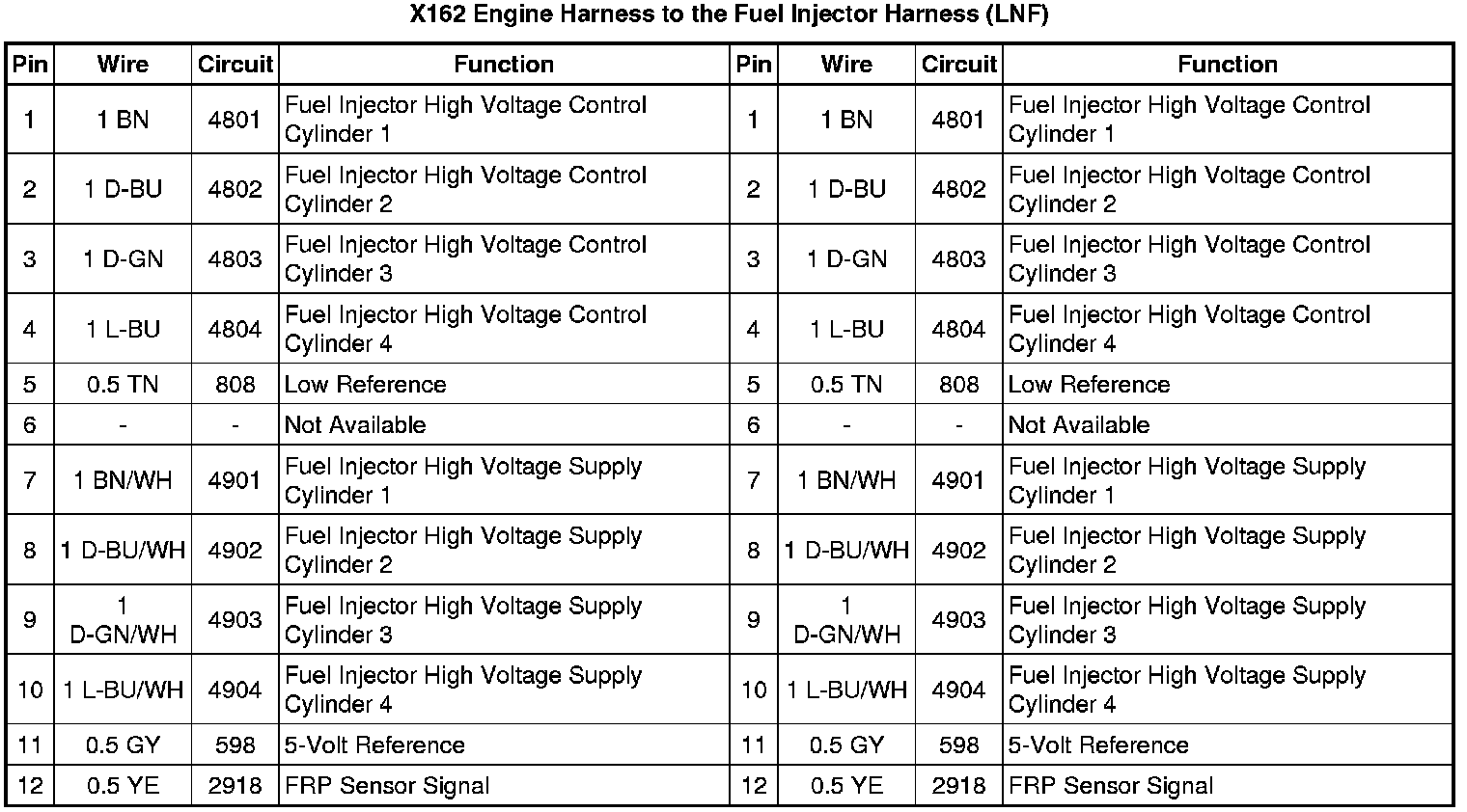 X162 Engine Harness to the Fuel Injector Harness (LNF)