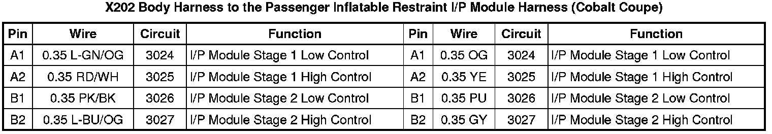 X202 Body Harness to the Passenger Inflatable Restraint I/P Module Harness (Cobalt Coupe)