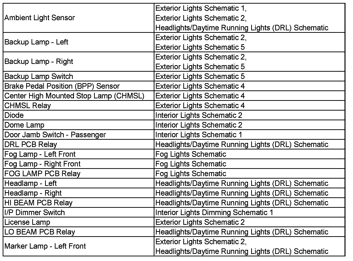 Wiring Schematic Index