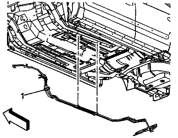 9. Release the pipe retainers (1) from the vehicle underbody.