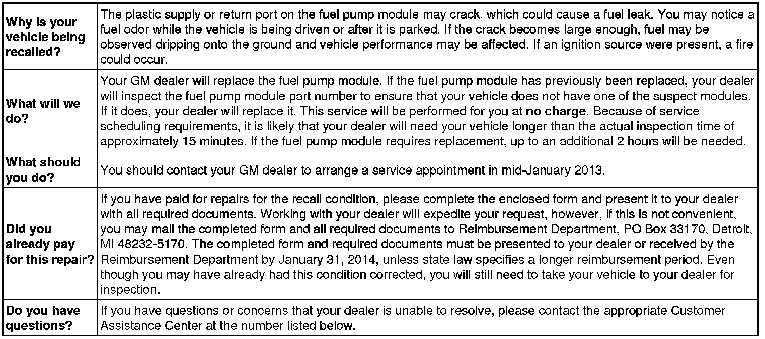 Owner LetterNovember 2012 (Letter for Chevrolet Cobalt and Pontiac G5 customers)