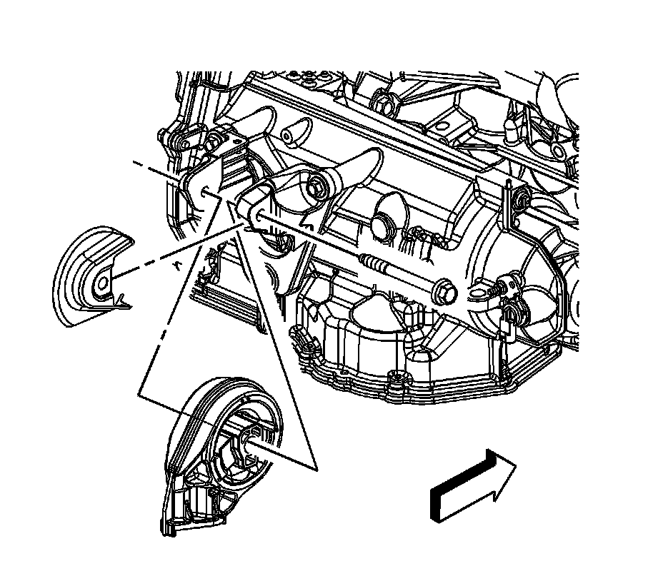 * Rotate the rear transaxle mount heat shield clockwise until the tab is seated on the mount bracket.
