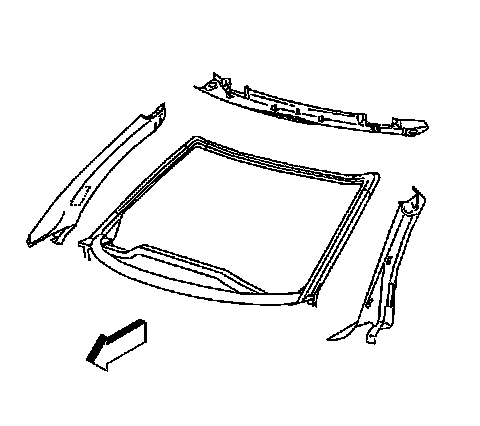 2. Position the windshield side garnish molding to the windshield frame.