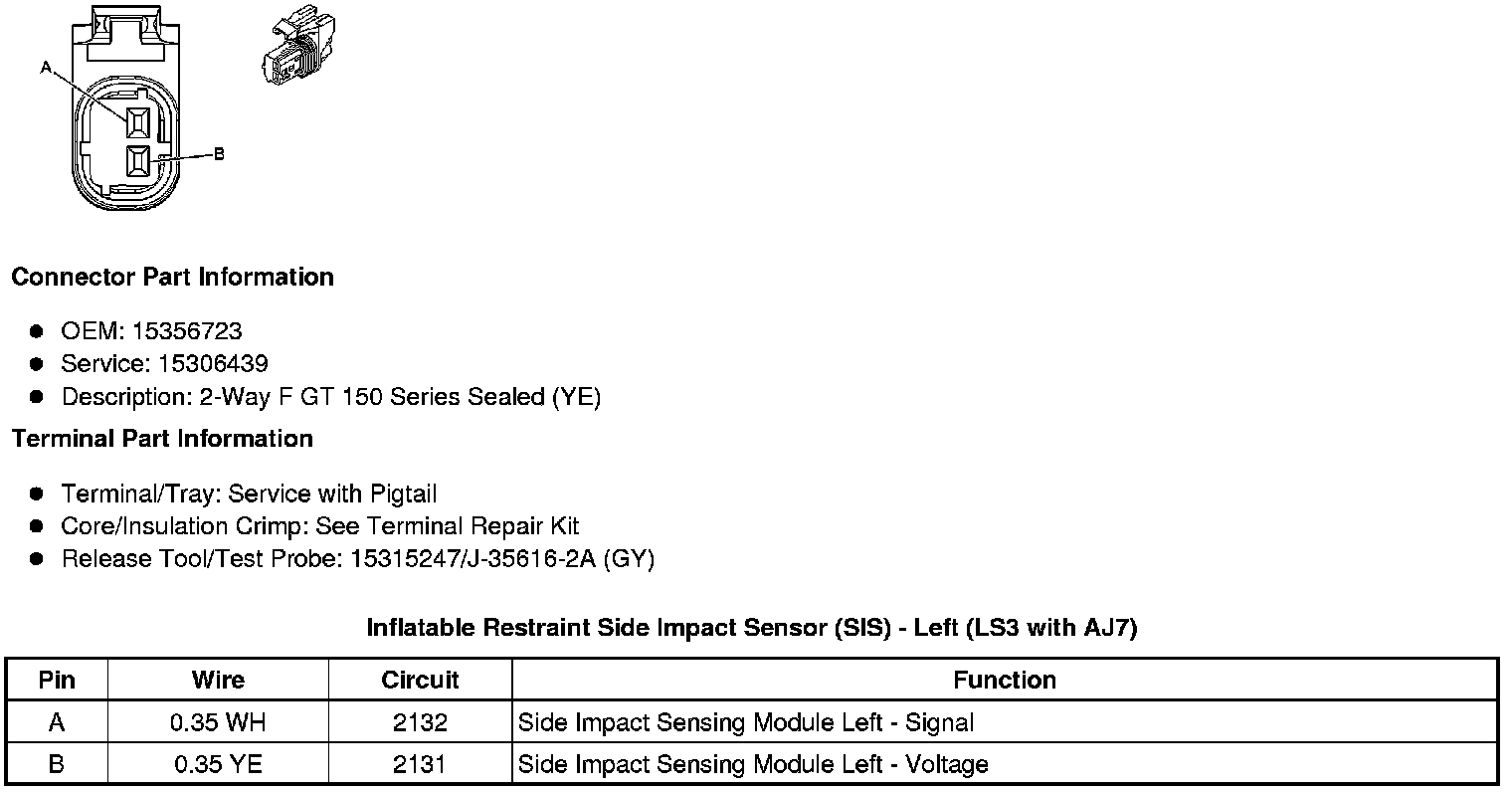 Inflatable Restraint Side Impact Sensor (SIS) - Left (LS3 with AJ7)