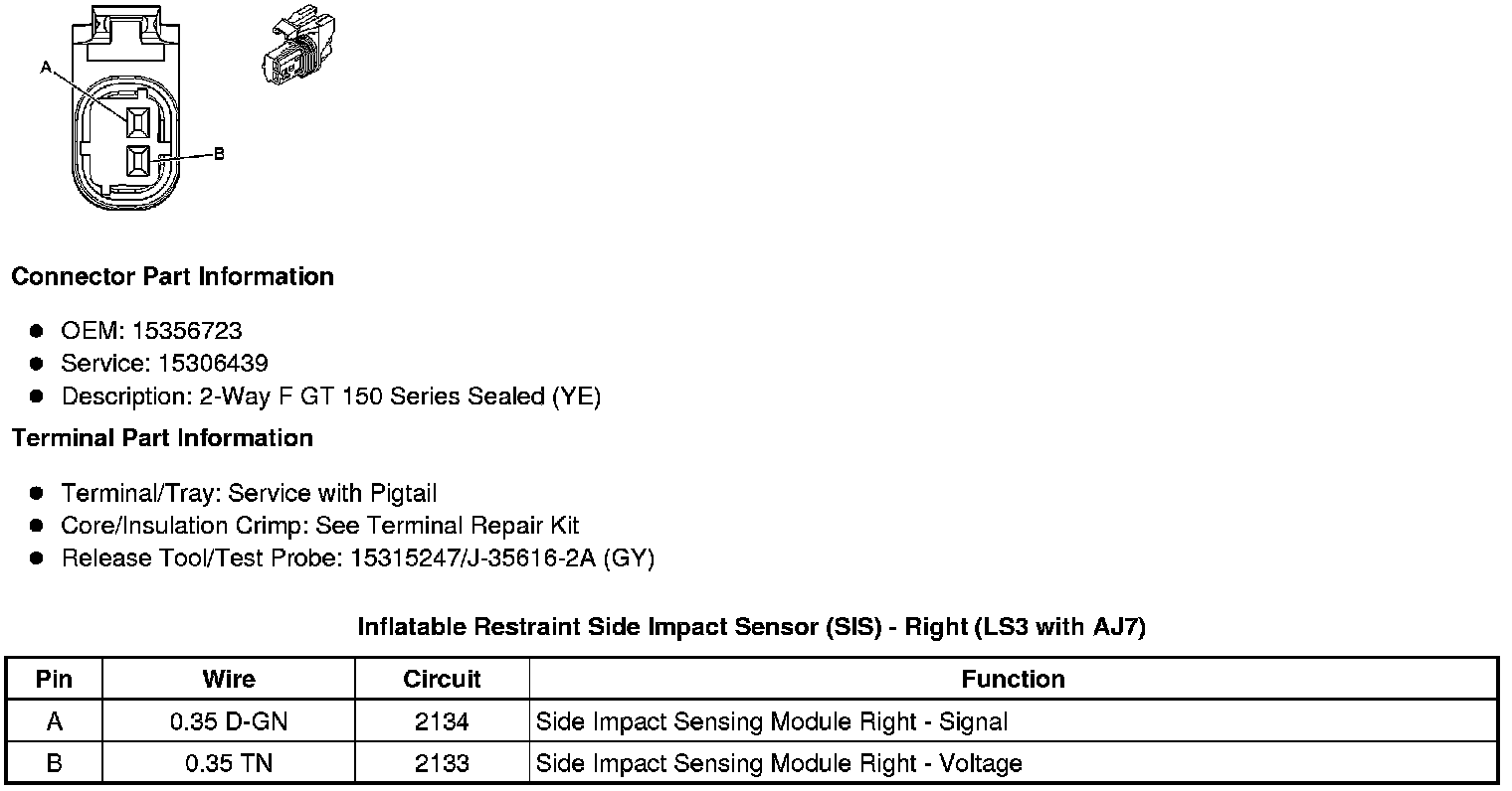 Inflatable Restraint Side Impact Sensor (SIS) - Right (LS3 with AJ7)