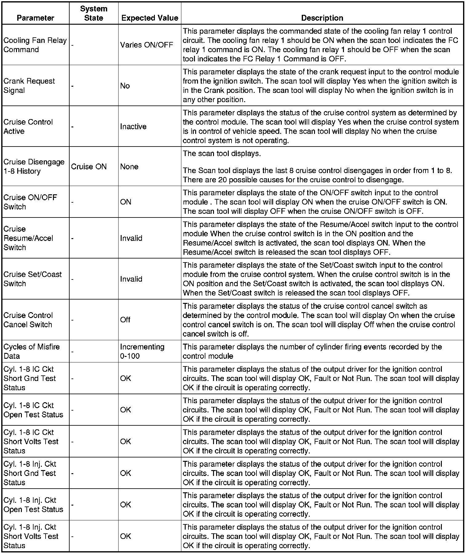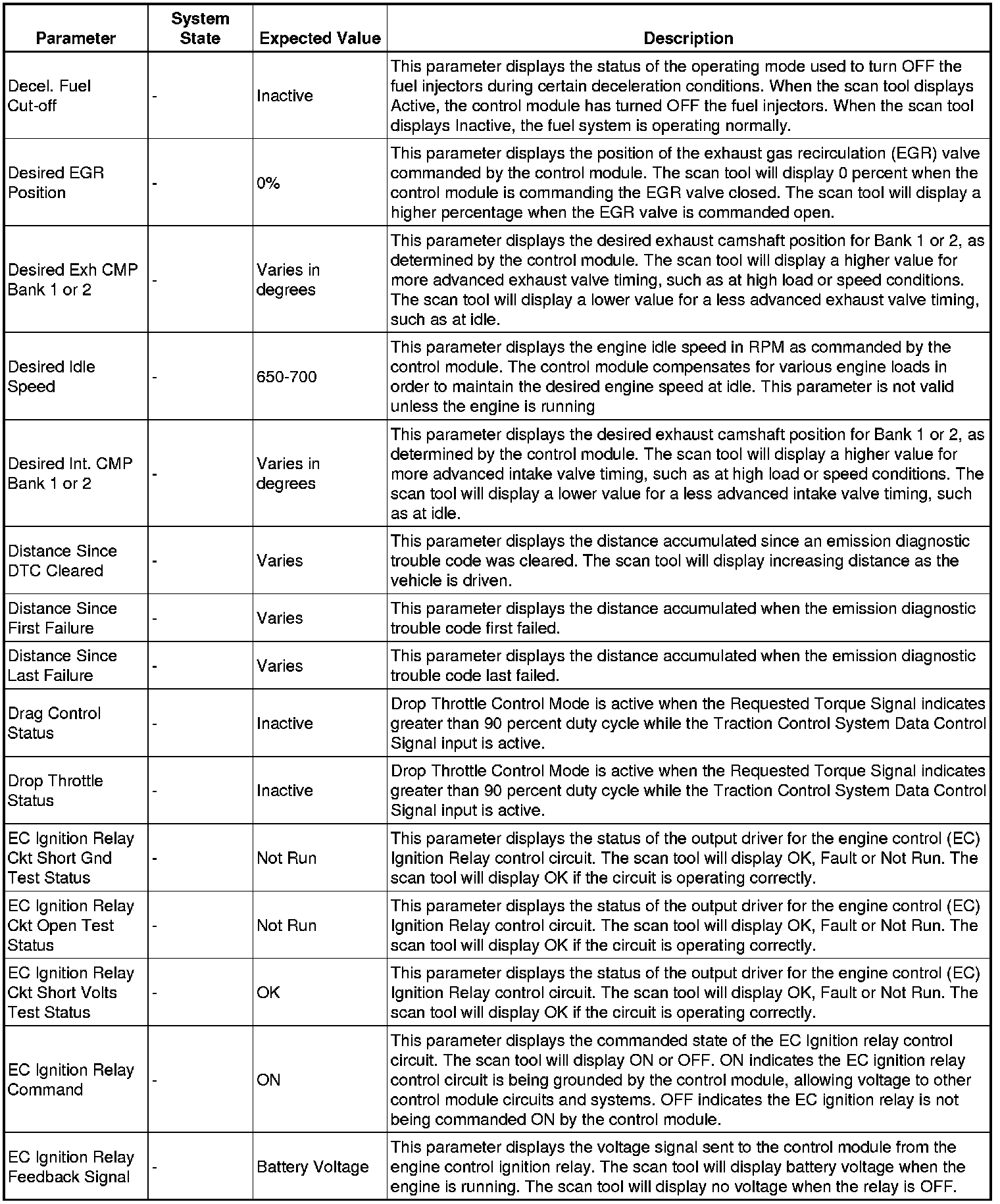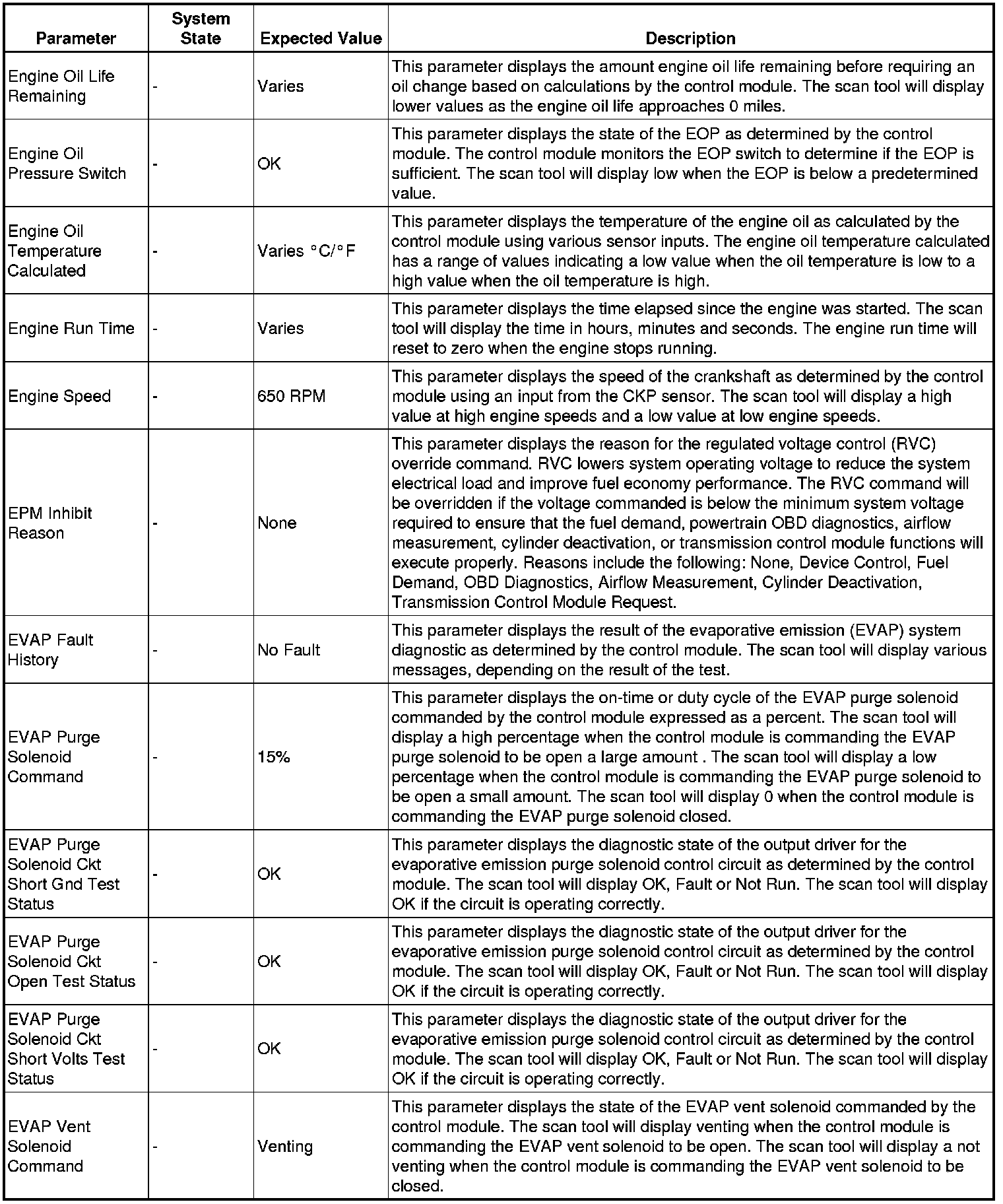 The Engine Control Module Scan Tool Data List contains all engine-related parameters that are available on the scan tool. The list is arranged in alphabetical order. A given parameter may appear in any one of the data lists, and in some cases may appear more than once, or in more than one data list in order to group certain related parameters together.