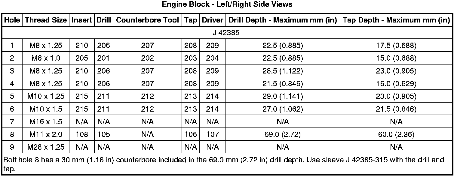 Thread Repair Specifications (6.2L LS3/7.0L)