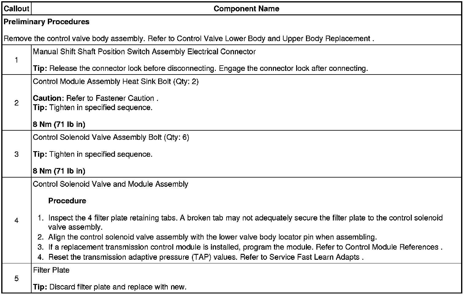 Control Solenoid Valve and Transmission Control Module Assembly Replacement