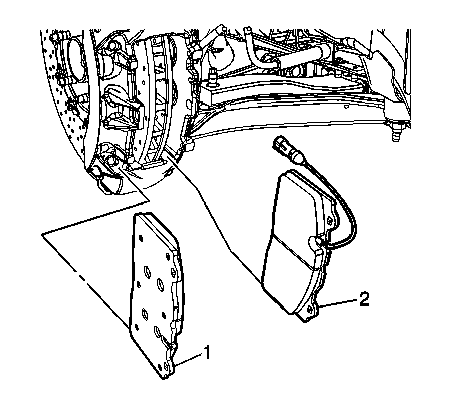 2. Install the inner disc brake pad and wear sensor assembly (2).