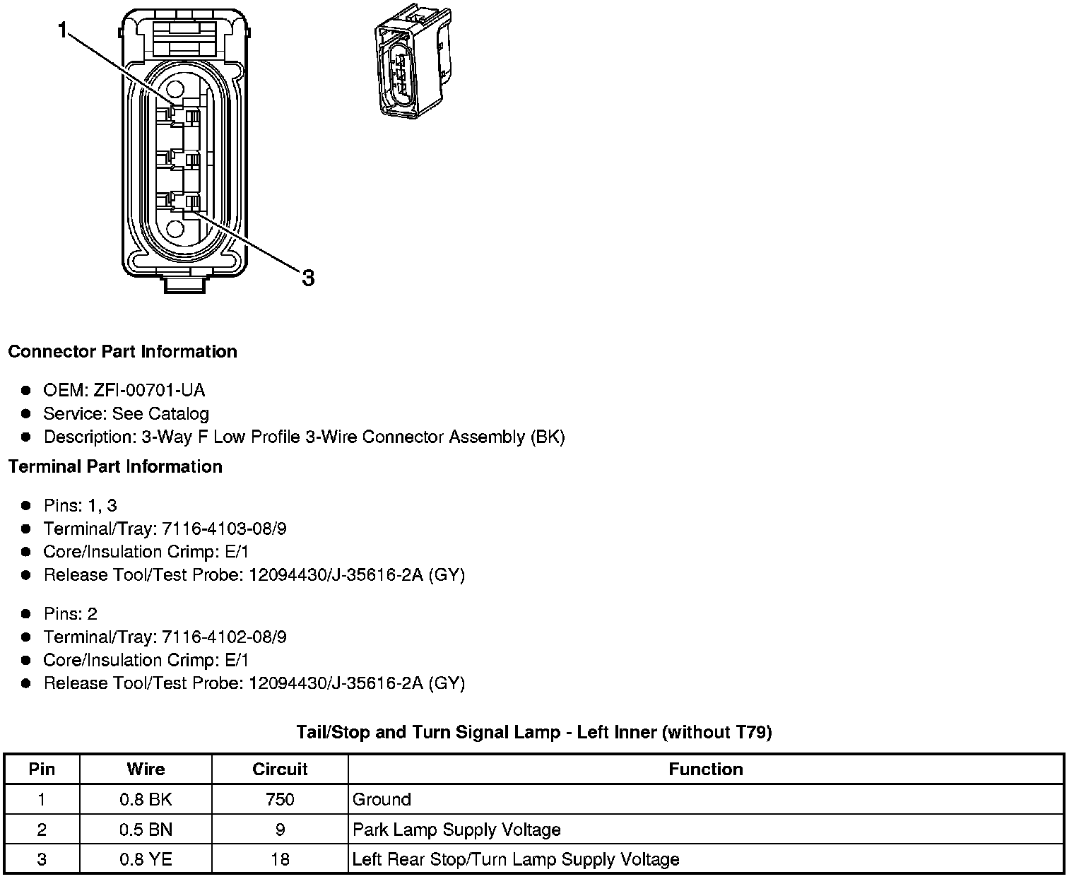 Tail/Stop and Turn Signal Lamp - Left Inner (without T79)