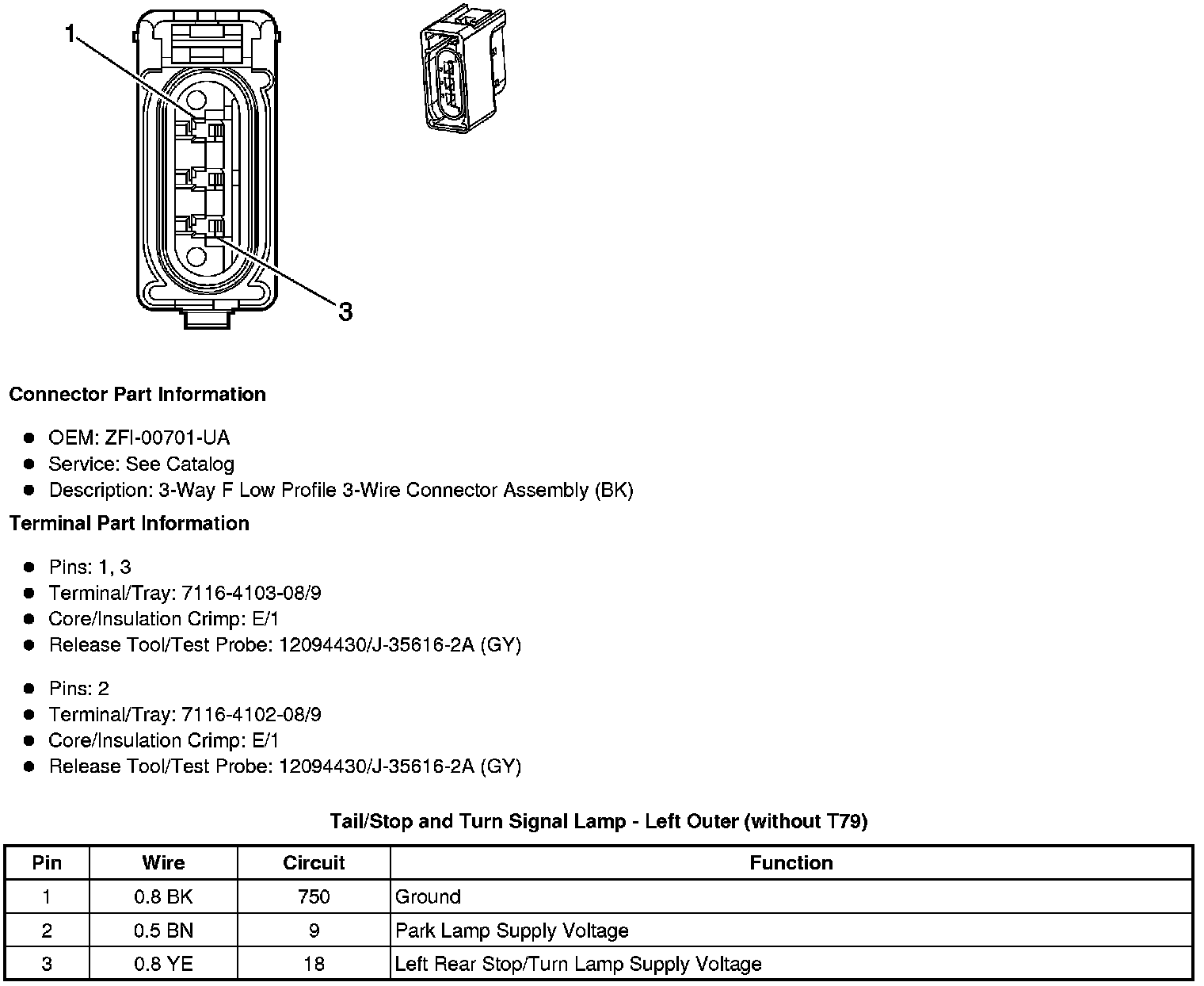 Tail/Stop and Turn Signal Lamp - Left Outer (without T79)