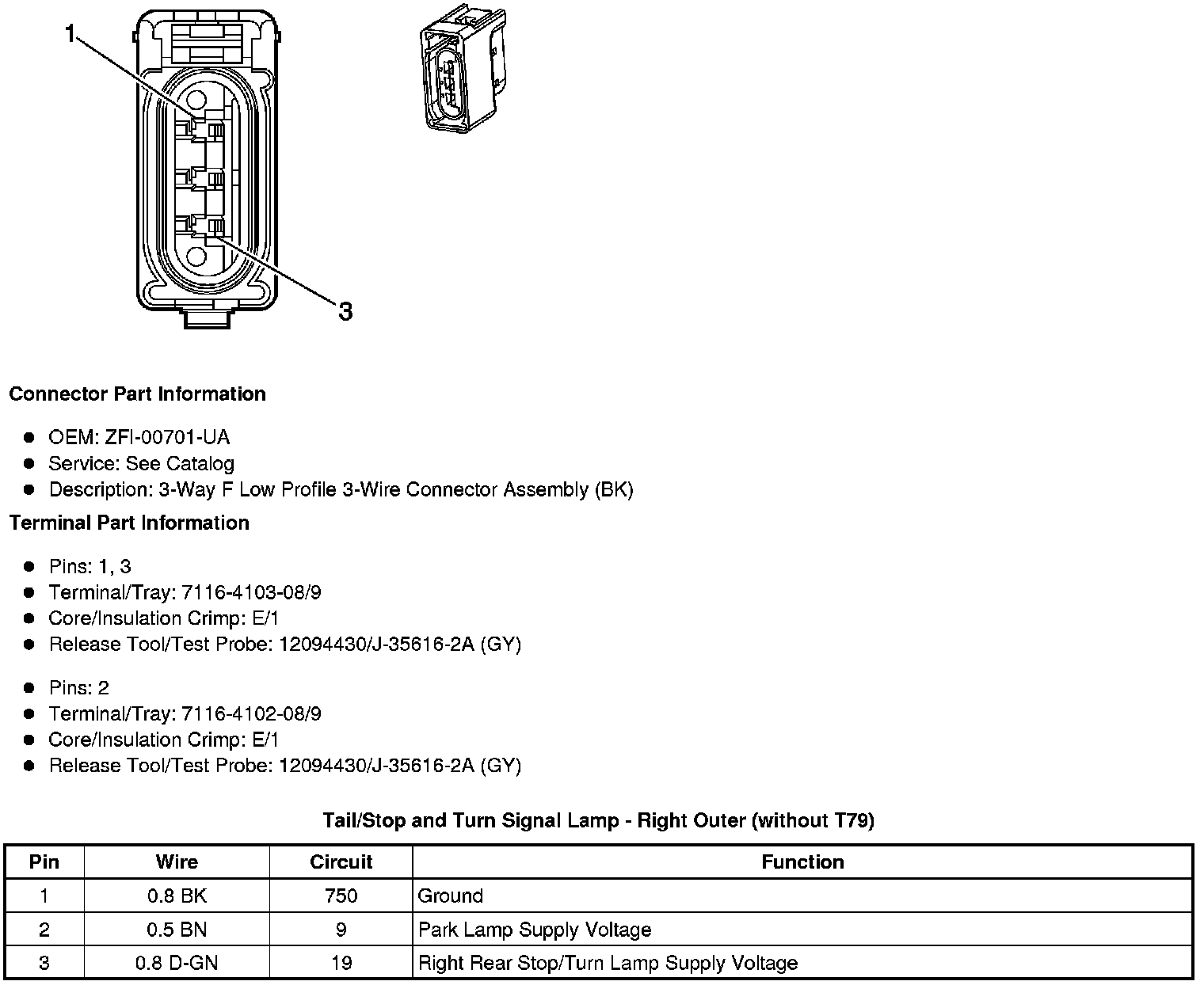 Tail/Stop and Turn Signal Lamp - Right Outer (without T79)