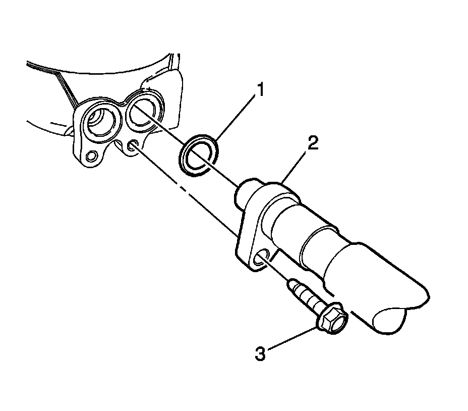 11. Remove the outlet hose to oil tank bolt (3) and disconnect the hose (2) from the oil tank. Discard the oil seal (1).