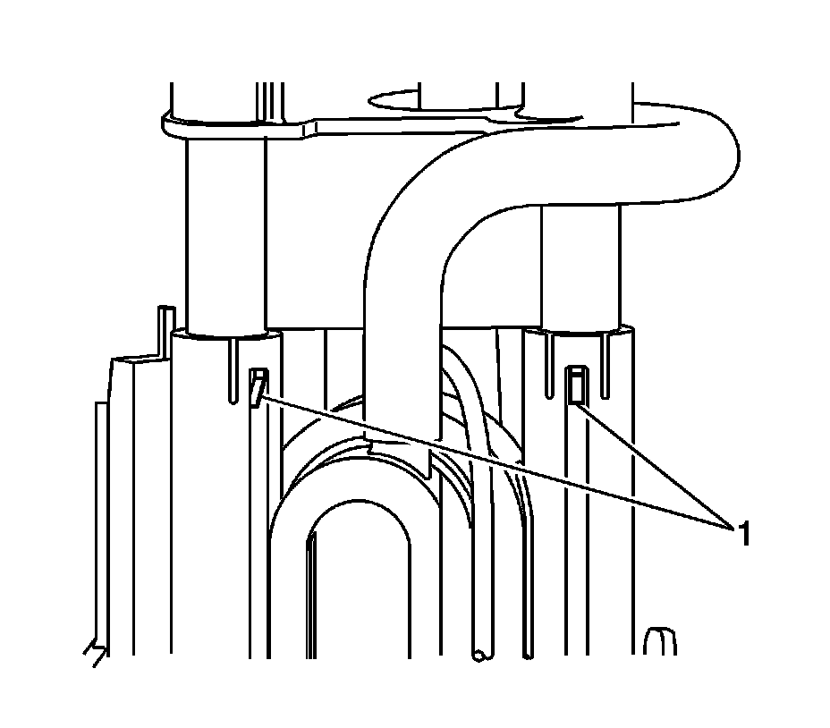 2. Press on the 3 connector position assurance (CPA) lock tabs (1) and slide downward.