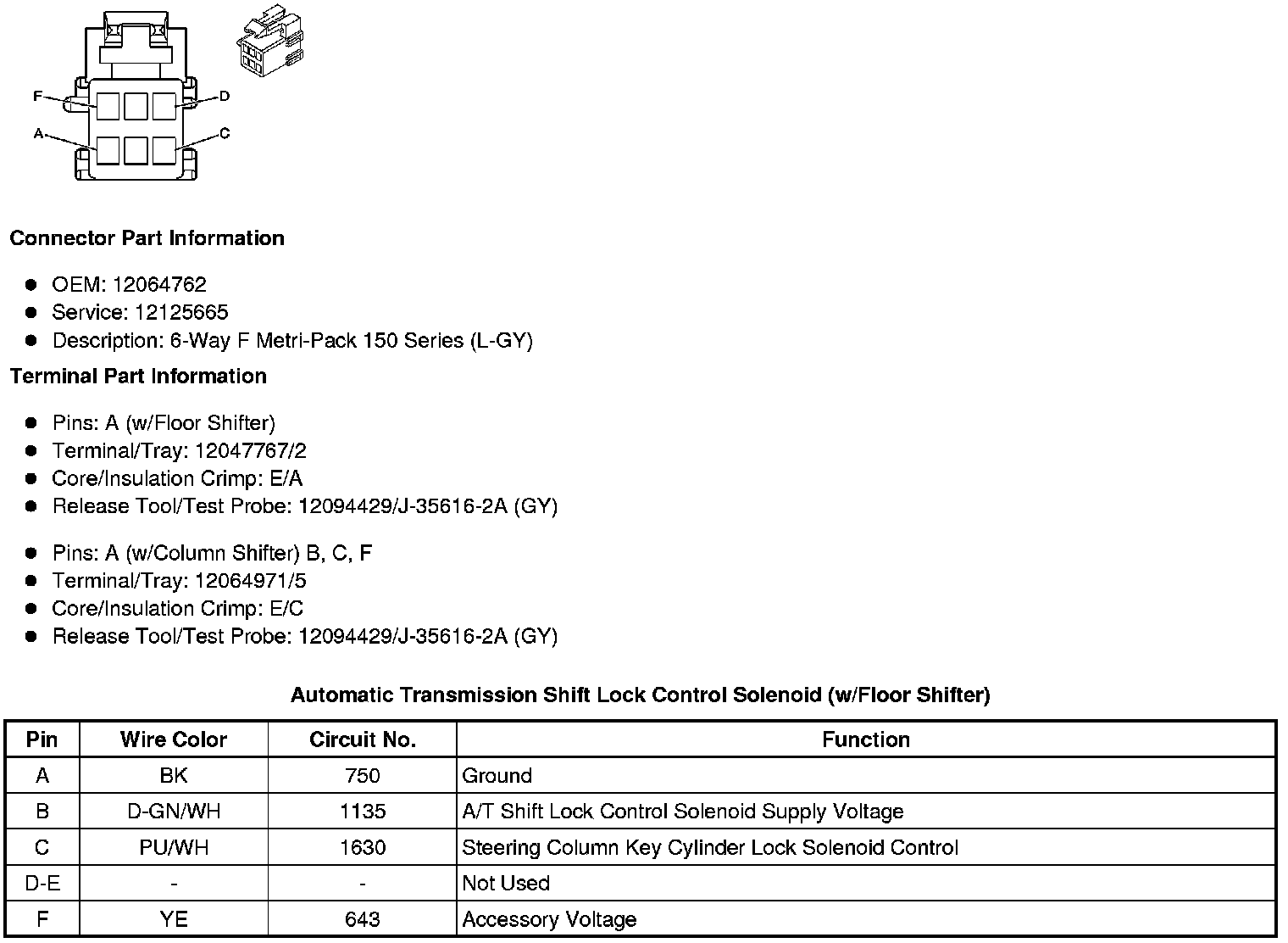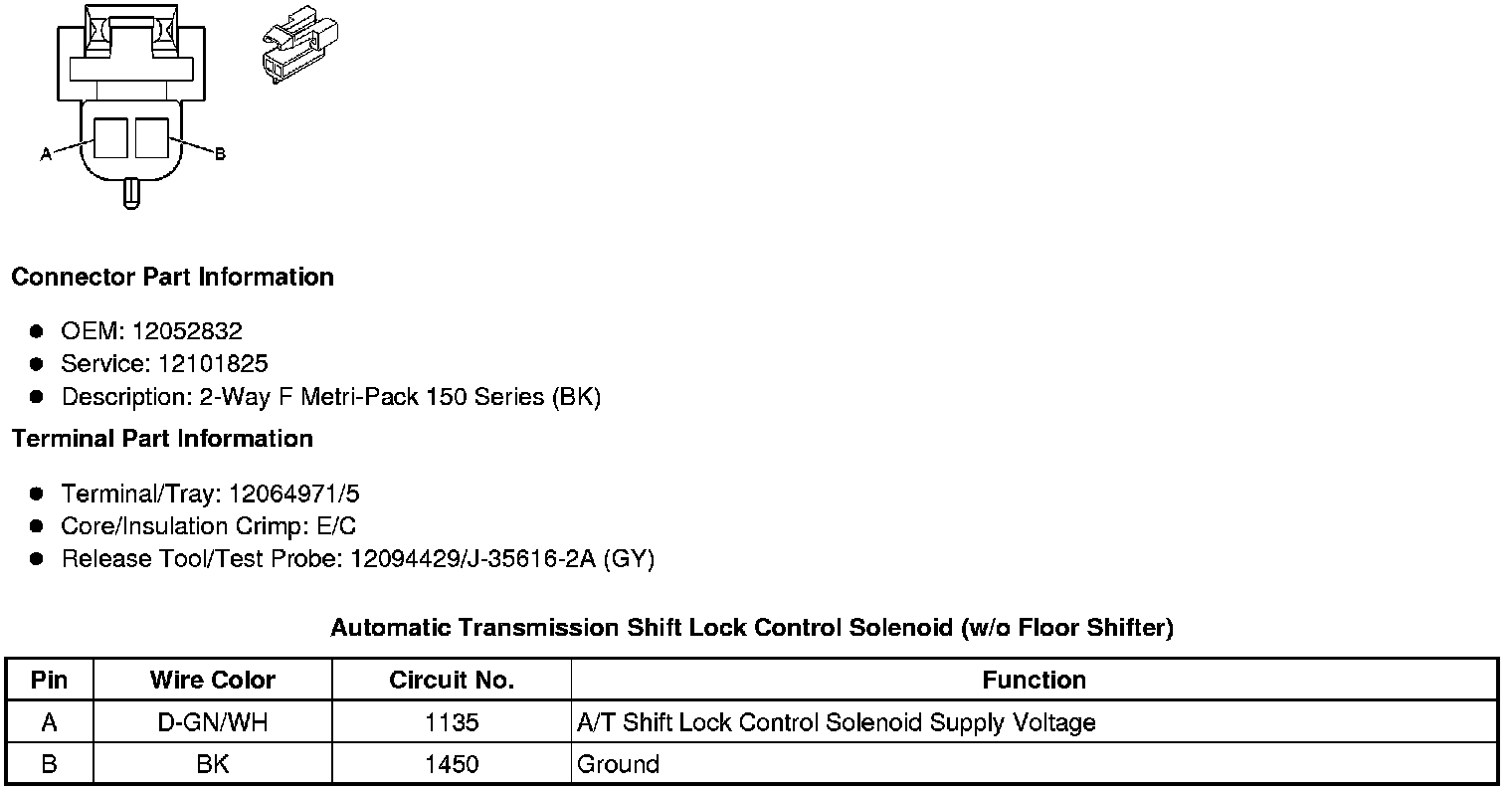 Automatic Transmission Shift Lock Control Solenoid (w/o Floor Shifter)