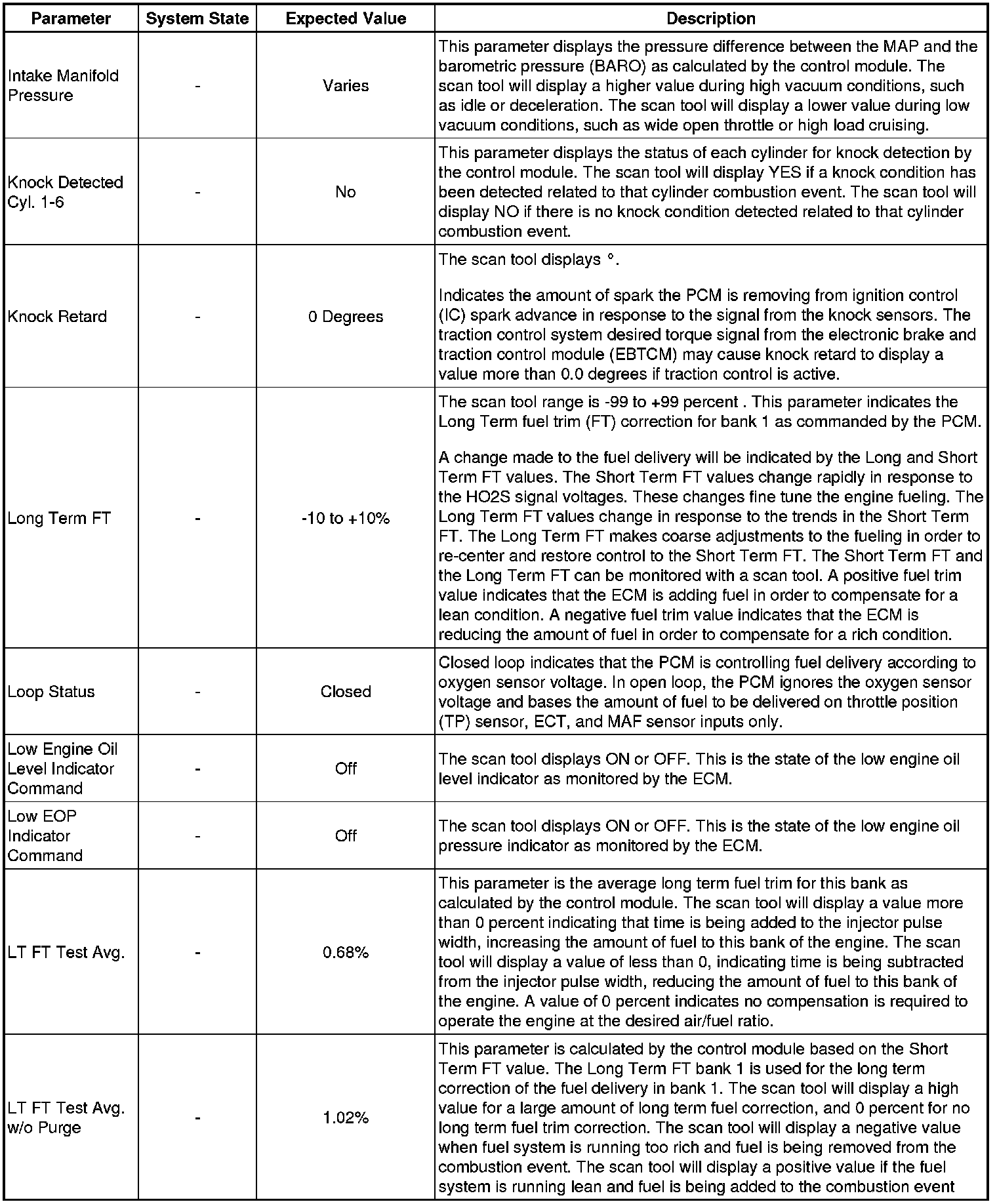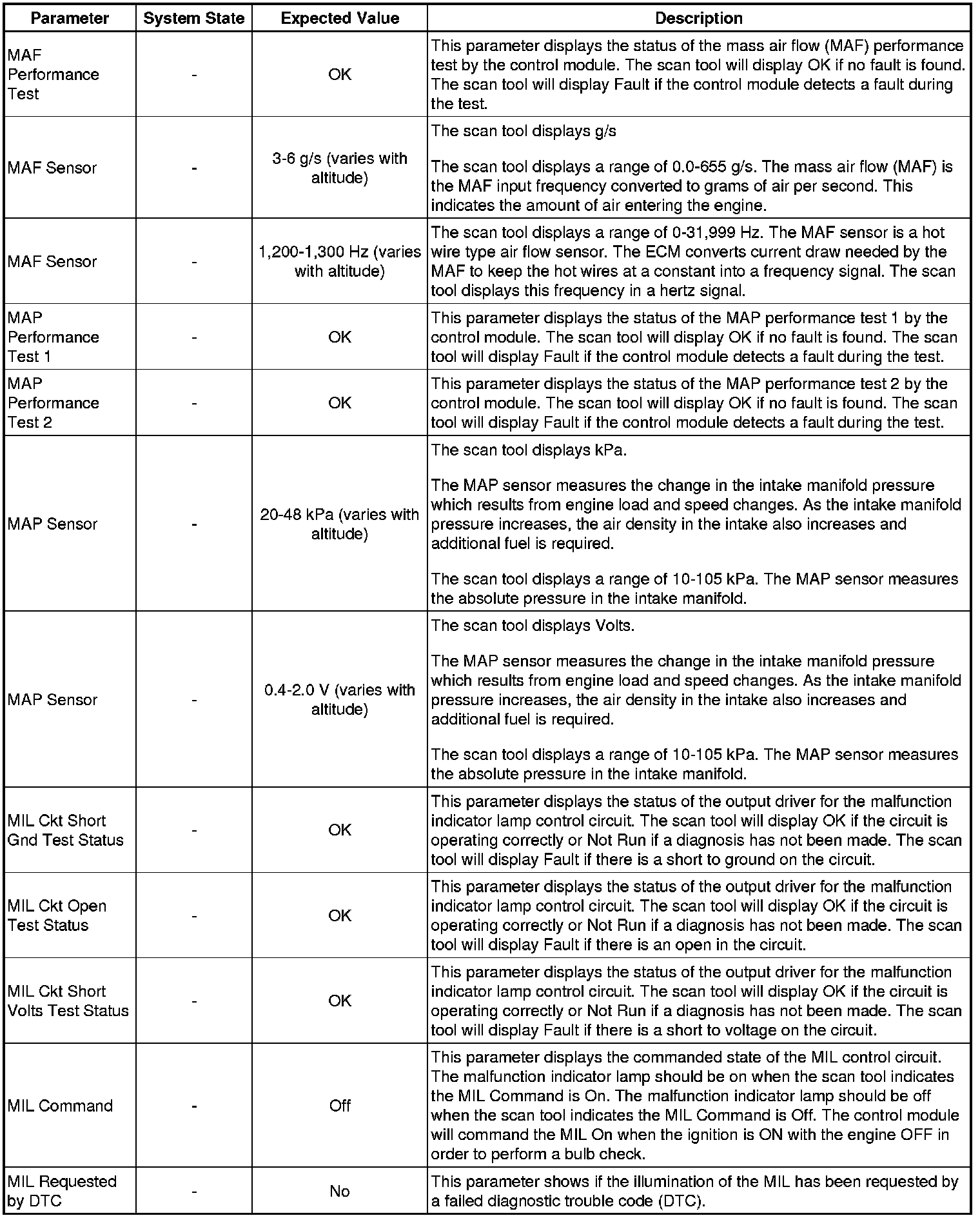 Only the parameters listed below are referenced in this service manual for use in diagnosis. If all values are within the typical range described below, refer to Symptoms - Engine Controls (- Symptoms - Engine Controls) for diagnosis.