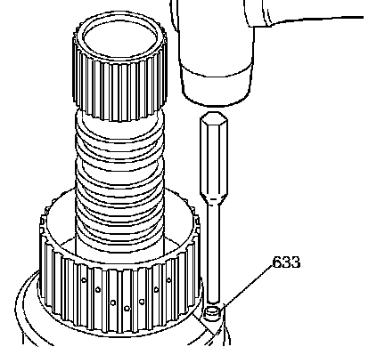 Use a 6.25 mm (1/4 in) drift and mallet in order to remove the ball check valve assembly (633) from the input clutch housing.