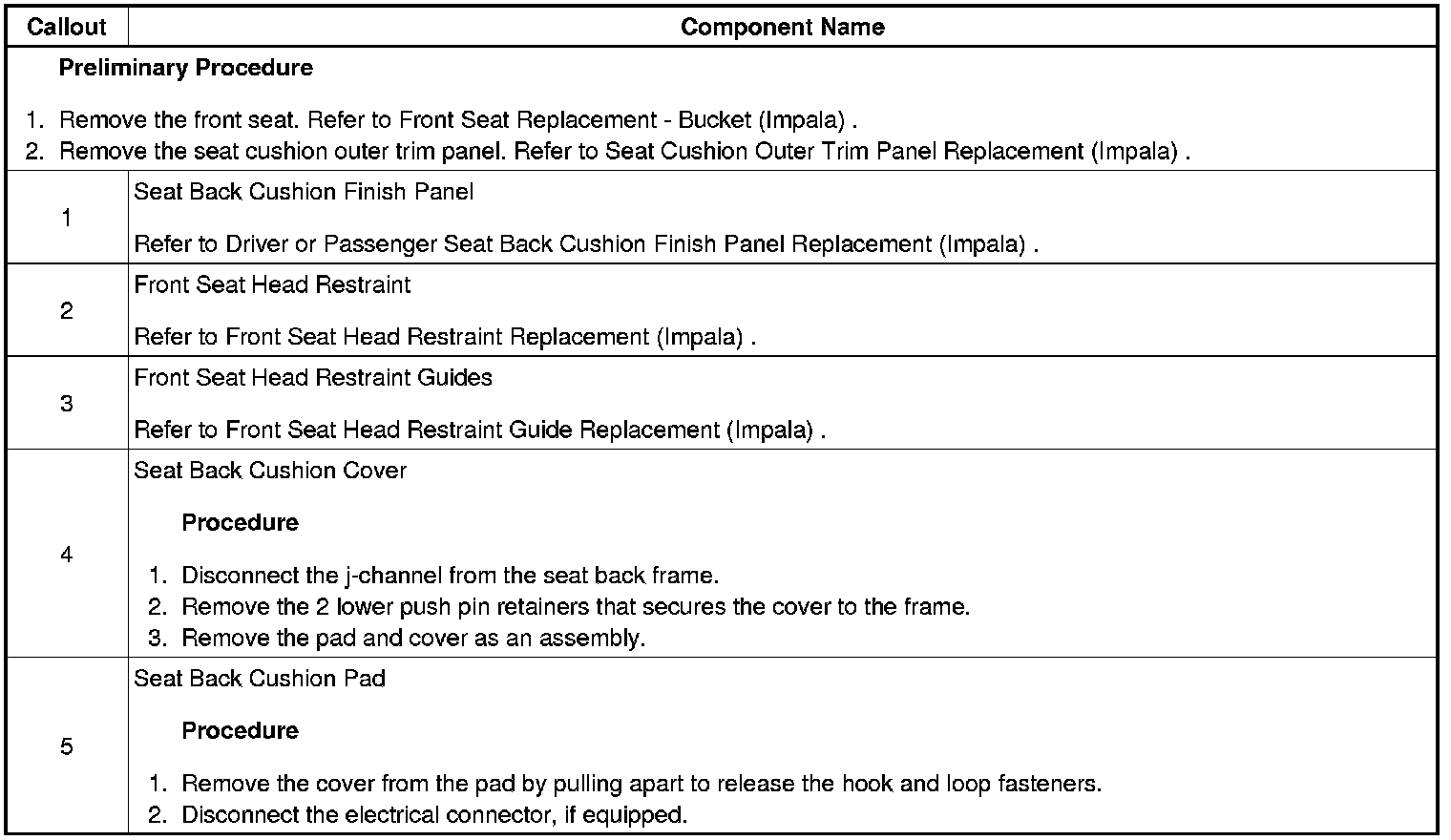 Cover and Pad Replacement (Impala)