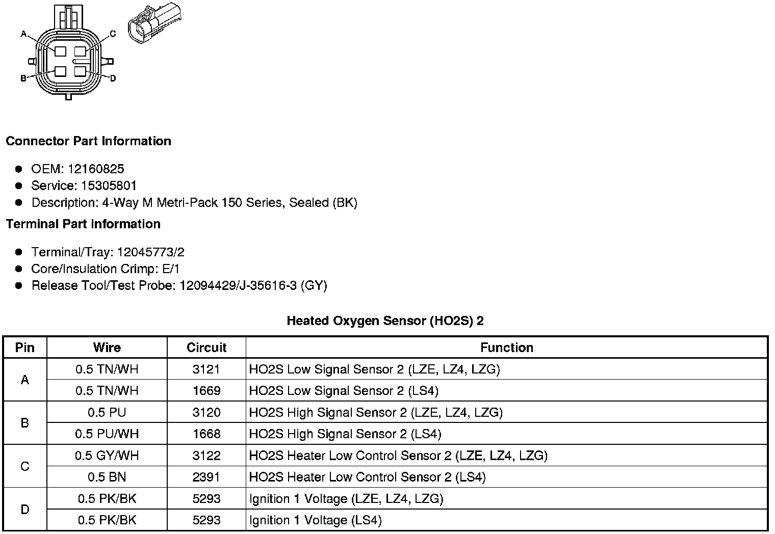 Heated Oxygen Sensor (HO2S) 1 (LZE-3.5L Flex Fuel, LZ4-3.5L Gas, LZG-3.9L Flex Fuel)
