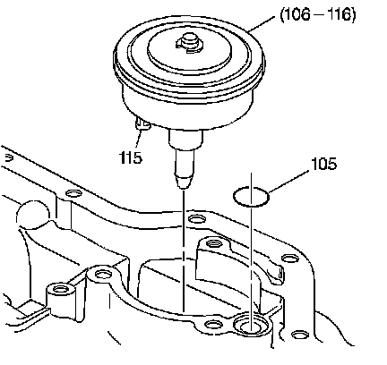 1. Install the 2-1 manual band servo cover seal (105) into the case. Lubricate the 2-1 manual band servo cover seal (105) with automatic transmission fluid.