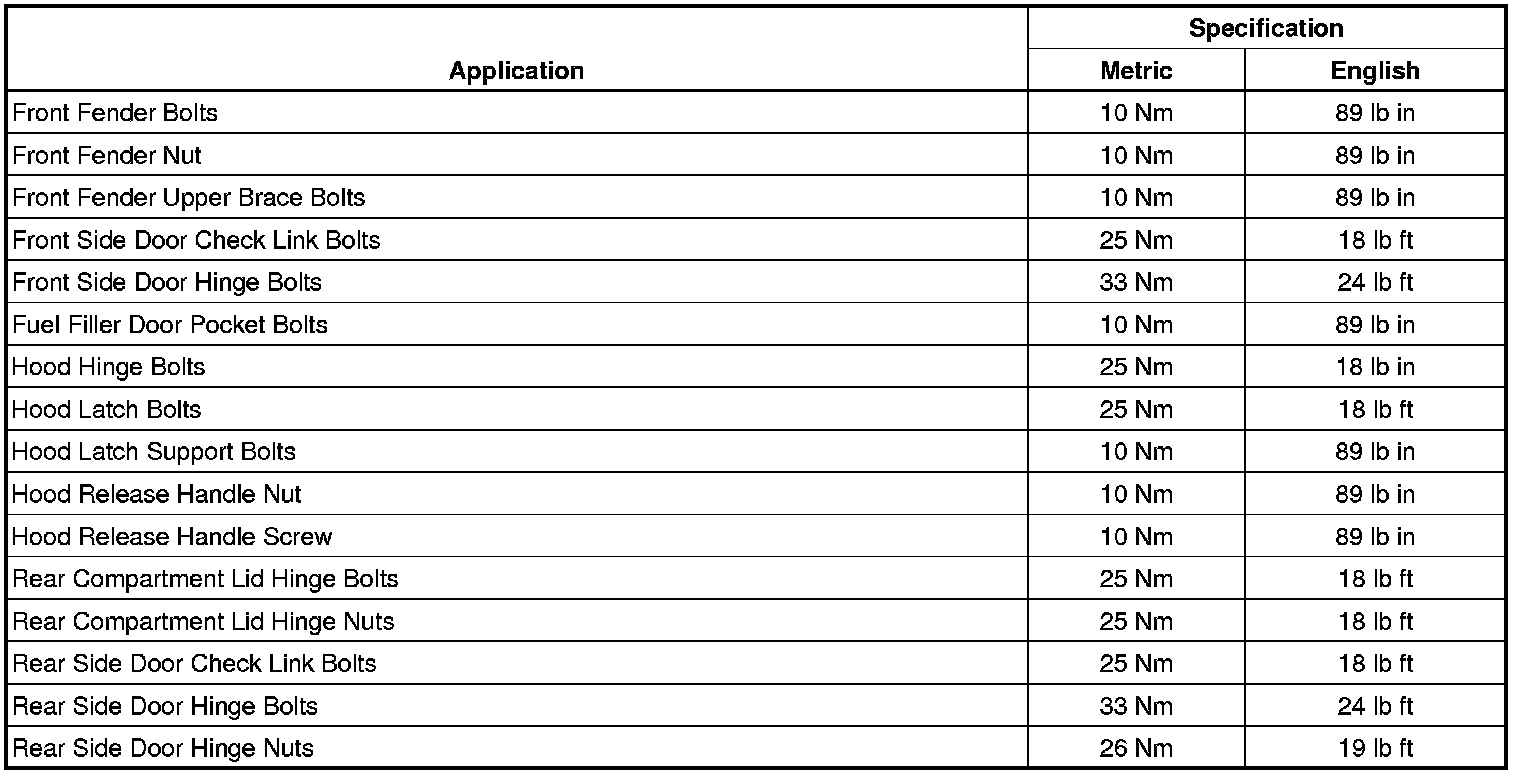 Fastener Tightening Specifications